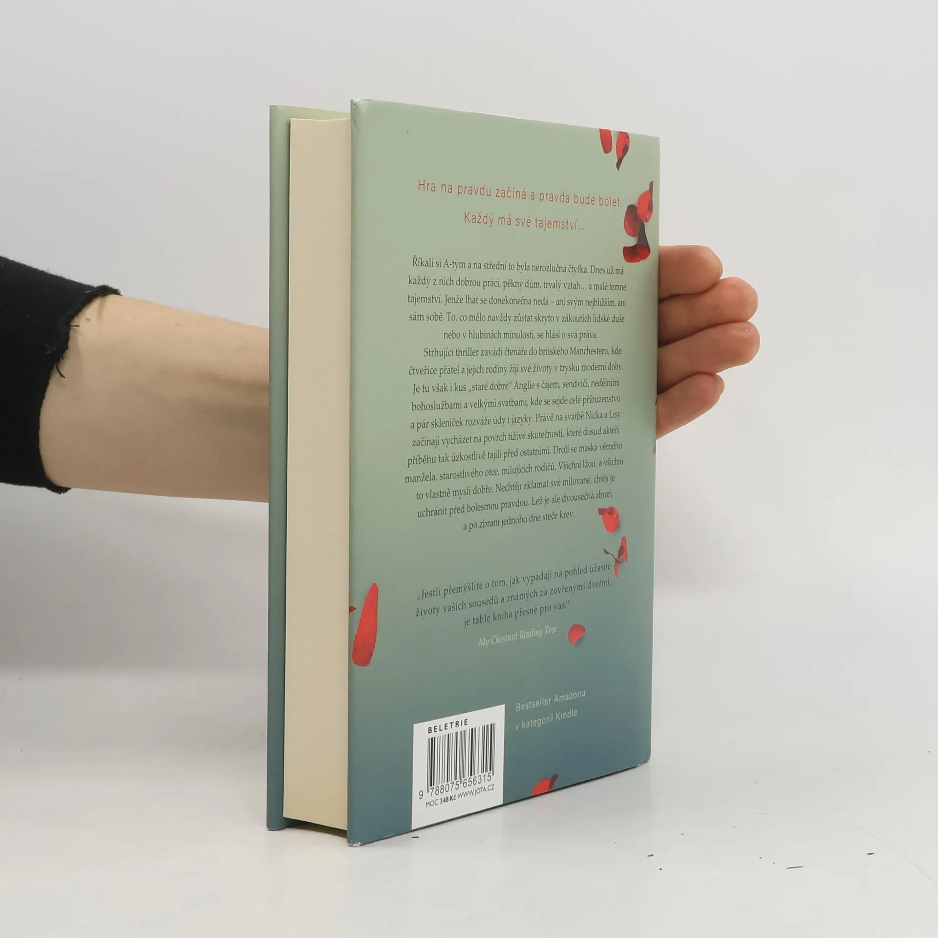 Dramatický román s prvky thrilleru, dechberoucí a pohlcující příběh ze současnosti, příběh o přátelství a vztazích, ale také o tajemstvích, zradách a lžích… Opravdu znáte své nejlepší přátele? Co se děje za zavřenými dveřmi úhledných rodinných domků? Jak dlouho může zůstat temné tajemství utajeno, než dojde k jeho prozrazení s katastrofálními následky? Nick a Lisa mají svatbu, ale jejich kamarádka Penny sedí na okenním parapetu ve čtvrtém patře hotelu a chystá se skočit. Snoubenci a vůbec všichni přítomní jsou v šoku… Jenomže brzy se ukáže, že každý z party dlouholetých přátel má nějaké své tajemství a že jejich vztah nebyl rozhodně založen na důvěře. Jednotlivé lži a tajemství postupně vyplouvají na povrch a je zřejmé, že dosavadní životy celoživotních přátel se mohou najednou zhroutit jako domeček z karet.