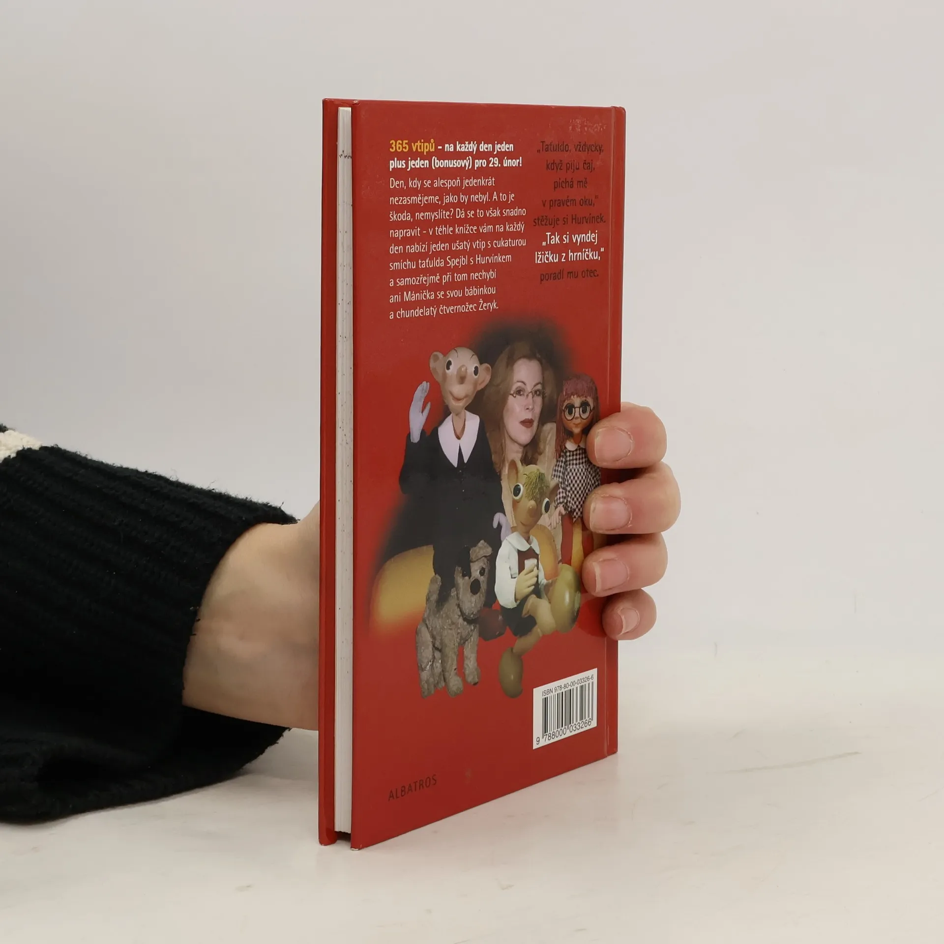 Den, kdy se alespoň jedenkrát nezasmějeme, jako by nebyl. A to je škoda, nemyslíte? Dá se to však snadno napravit – v téhle knížce vám na každý den nabízí jeden ušatý vtip s cukaturou smíchu taťulda Spejbl s Hurvínkem a samozřejmě při tom nechybí ani Mánička se svou bábinkou a chundelatý čtvernožec Žeryk. Doplněno krátkou historii Divadla S+H napsanou dnes nejpovolanější osobou – Helenou Štáchovou.