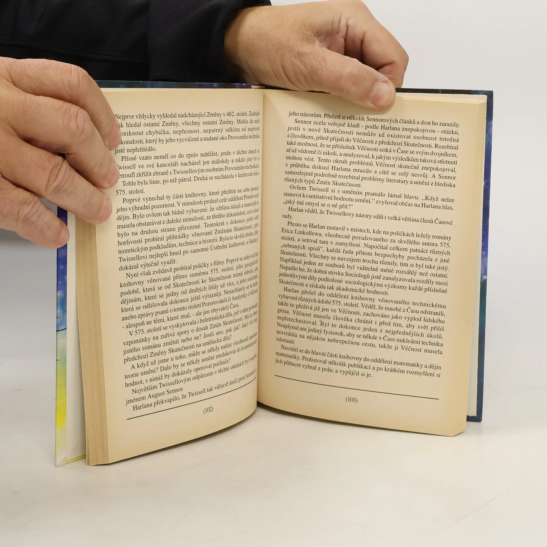 Po miliony let si pozemšťané vyprávějí zkazky o podivném, nedosažitelném místě, které se nazývá Věčnost. Lidská fantazie opředla bájný svět závojem mýtů a legend – ale pravda je ještě podivnější. Věčnost, to je sídlo všemocné korporace, která ovládá cesty v čase a s fanatickou vírou ve vlastní poslání upravuje lidské dějiny. Každý zásah do historie je veden snahou vymýtit veškeré zlo, zbavit lidstvo válek a utrpení. Andrew Harlan až dosud tomuto úkolu oddaně sloužil. Jenže teď odhalil podivnou chybu v samých základech Věčnosti. Zdá se, že Věčnost vůbec nemohla vzniknout – jak je tedy možné, že existuje…?