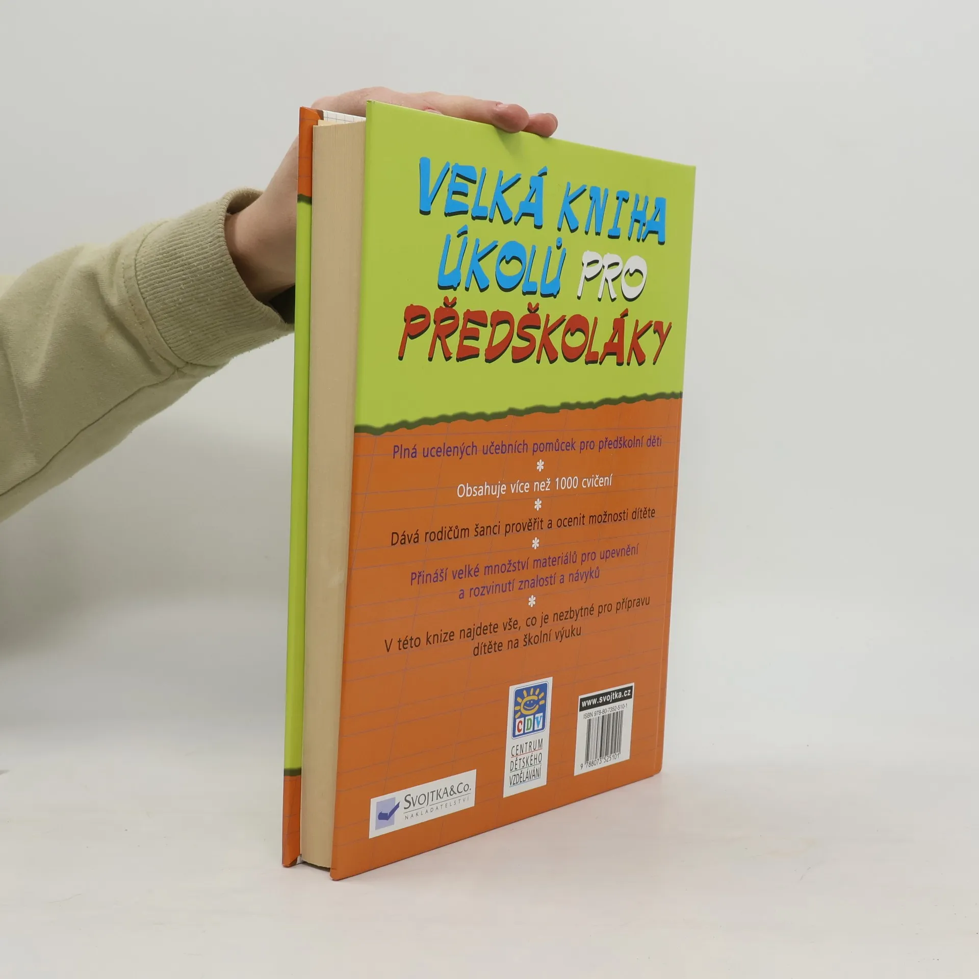 Kniha obsahuje více než tisíc rozmanitých úloh pro děti předškolního věku. Řešením těchto úloh se vaše dítě naučí písmenům a číslicím, rozšíří svou slovní zásobu, naučí se pomocí obrázků sestavovat pohádky, vybírat ke slovům rýmy a rozlišovat geometrické obrazce. Krok za krokem tak vaše dítě získá zábavnou formou vědomosti, které mu ulehčí start ve školních lavicích.