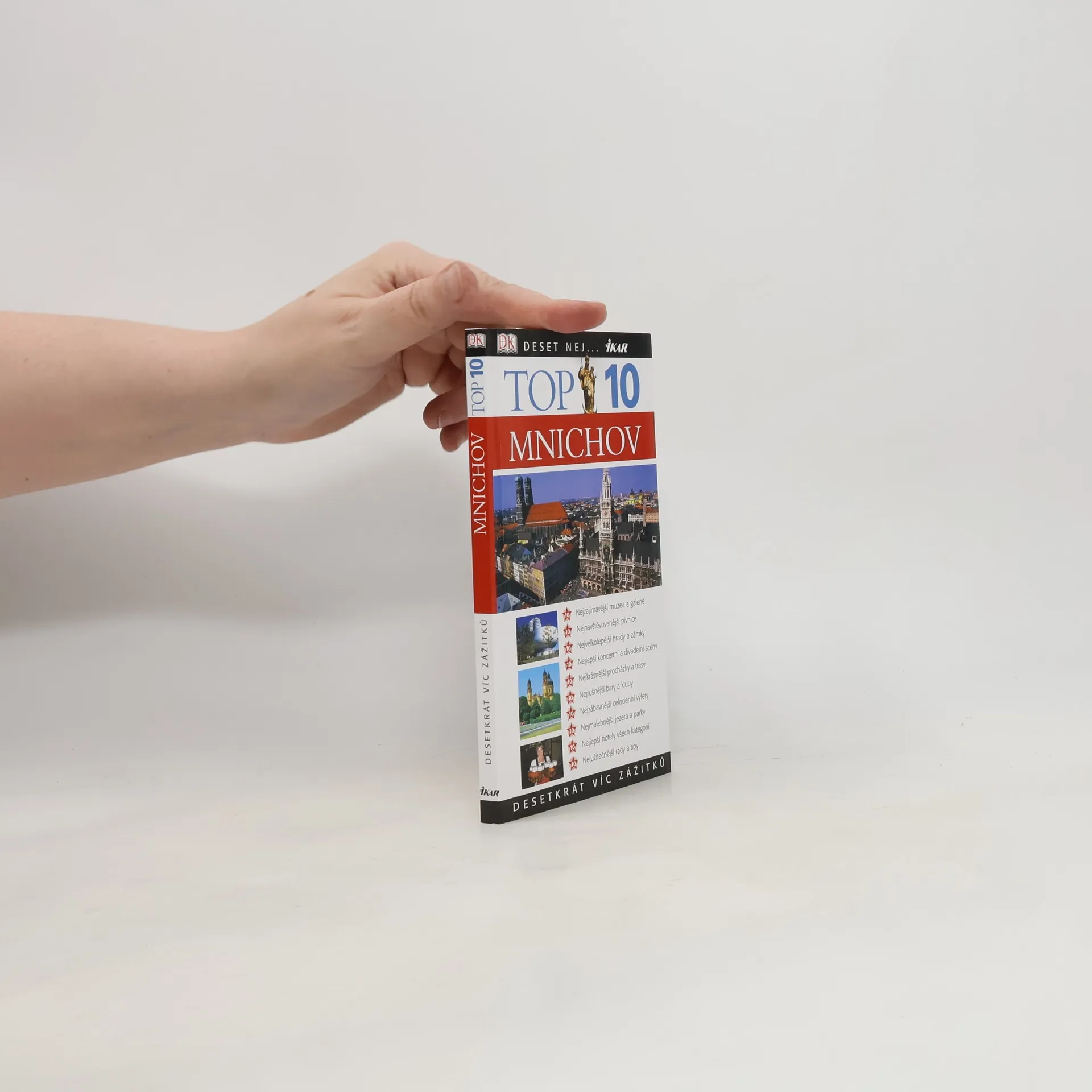 Cestovní příručka představuje deset nejzajímavějších míst Mnichova a nabízí tipy na výlety po Bavorsku. Úvodní část knihy popisuje 10 "nej" památek a další významná kulturní a historická místa, muzea, galerie, zahrady a parky, nejlepší restaurace, apod. Další část je věnována procházce po městě, které je rozděleno do čtyř částí: centrum a Staré Město, Schwabing a univerzitní čtvrť, podél řeky Isar, jih a západ. V závěru jsou uvedeny tipy na celodenní výlety po okolí Mnichova. Informace pro turisty, mapky, slovníček, rejstřík.