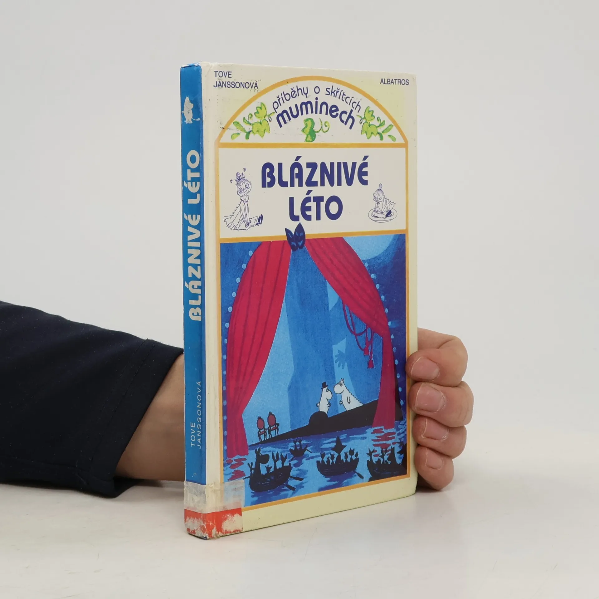 Nad muminím údolím se tyčí zdánlivě nečinná sopka. Jenže onoho léta začala dýmat a chrlit sazi za sazí. Během jediné noci popraskala zem a velká voda zaplavila údolí široko daleko. Ačkoliv mumínky připravila o jejich útulný domeček, nestýskají si a jdou (vlastně plují) vstříc novému dobrodružství. Šťastná náhoda jim přeje, bez přístřeší nezůstávají dlouho. Leč jaký tajuplný dům voda přinesla? Uvnitř se skrývá nespočet předmětů, které nejsou tím, čím se zdají být - dveře z papíru, ve vzduchu končící schody, jablka ze sádry. Až uražená krysa Ema jim prozradí, že se ocitli ve slavném divadle. Léto to bude hravé, vskutku víc než bláznivé.