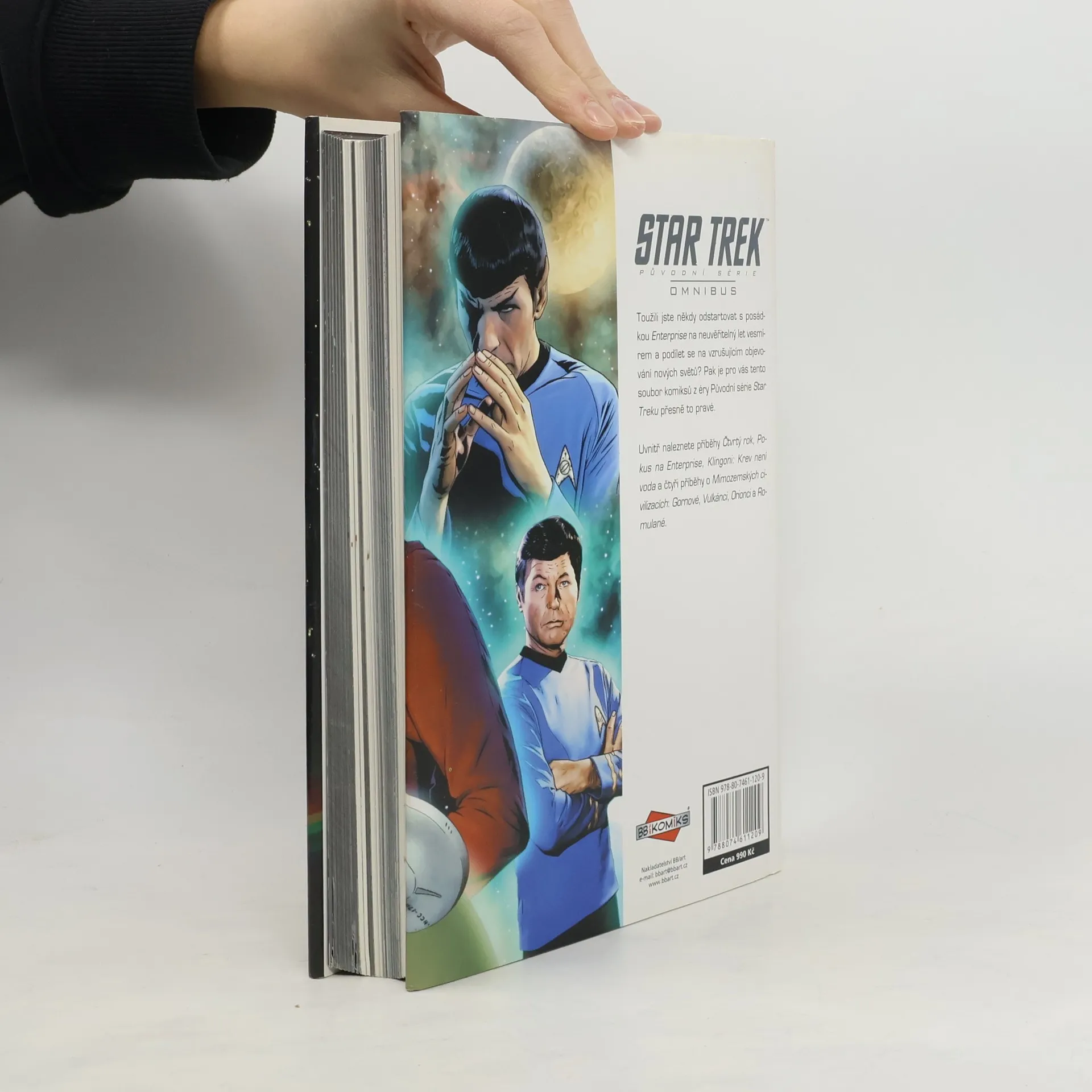 Uvnitř omnibusu naleznete Čtvrtý rok původní série Star Treku, Pokus na Enterprise, Klingoni: Krev není voda a čtyři příběhy o Mimozemských civilizacích: Gornové, Vulkánci, Orionci a Romulané. V tomto omnibusu naleznete dobrodružství ze světa Star Treku, vydaná původně ve 23 sešitech. Prvních jedenáct vás provede čtvrtým rokem mise hvězdné lodi Enterprise a posádky kapitána Kirka. Setkáte se s fenoménem připomínajícím obrovskou šroubovici DNA, potkáte životní formu na bázi viru, jež se šíří zvukem, i mnoho dalších nových druhů. Posádka Enterprise dokonce při návštěvě jedné cizí planety vystoupí v televizní show. V dalších pěti příbězích nahlédnete do tajů klingonské kultury a zažijete napínavé chvíle s tímto hrdým druhem, pro něhož je nejvyšší čest hrdinně padnout v boji. V posledních sedmi sešitech obohatíte své znalosti o další pozoruhodné mimozemské druhy, které jste měli možnost spatřit v seriálu Star Trek. Dozvíte se o ještěrovitých Gornech, kteří jsou taktéž znamenitými válečníky. Záhadní Vulkánci provázejí lidstvo již od prvního kontaktu, Romulané milují pikle a jsou opravdovými mistry v přetvářce, smyslní Orionci skrývají nejedno tajemství, a jak už to tak bývá, nakonec je vše jinak, než jak se zdá. Samozřejmě nechybí ani roztomilí tribblové, kteří dokáží pěkně zamotat hlavu nejednomu kapitánovi a zahnat na útěk i hrdé válečníky Klingonské říše.