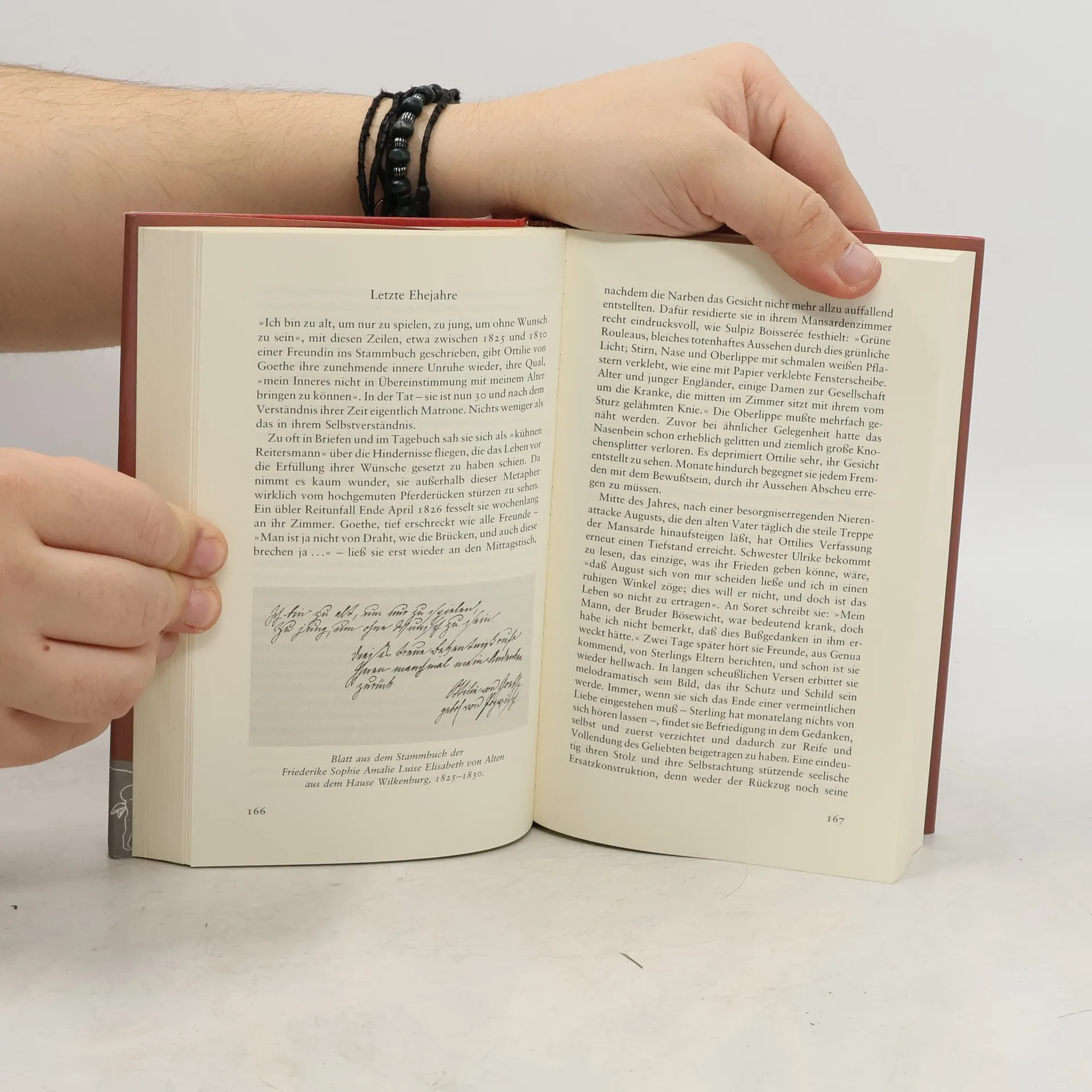 Ottilie von Pogwisch, 1796 in Danzig als Tochter eines preußischen Majors geboren, heiratete 1817 Goethes Sohn August. Die anfangs glückliche Ehe, aus der drei Kinder hervorgingen, wurde bald durch die Unvereinbarkeit der Partner und Ottilies hochgespannte Erwartungen an den Charakter des Dichtersohnes getrübt. Ihr herzliches Verhältnis zum verehrten Schwiegervater, verbunden mit großer Fürsorge und einer lebhaften Geselligkeit, blieb auch nach dem Tod ihres Mannes bestehen. Goethes Testament sicherte ihr freie Wohnung und jährlichen Unterhalt zu. In späteren Jahren versuchte sie, an frühere leidenschaftliche Beziehungen wieder anzuknüpfen und erlebte zahlreiche Enttäuschungen. 1872 starb sie vereinsamt in Weimar. Ruth Rahmeyers Biographie, die auf umfassendem und gründlichem Quellenstudium beruht, erscheint hier in einer erweiterten und durch neue Forschungen aktualisierten Neuausgabe.