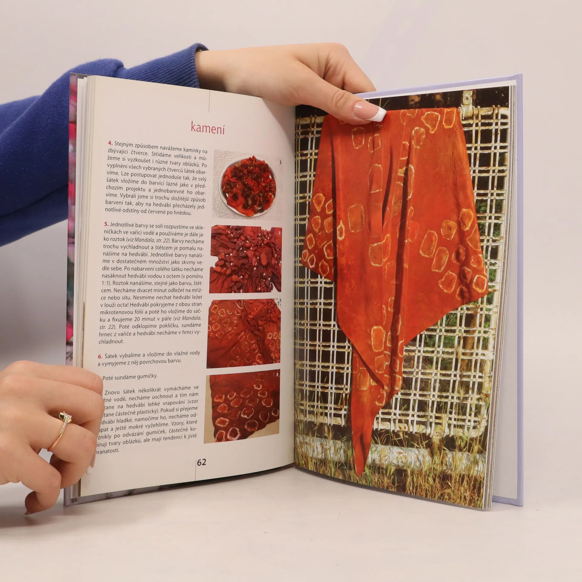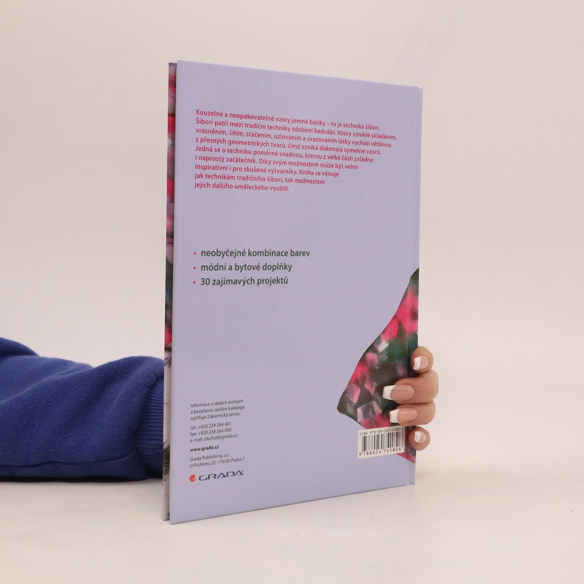 Kouzelné a neopakovatelné vzory jemné batiky - to je technika šibori. Šibori patří mezi tradiční techniky zdobení hedvábí. Vzory vzniklé skládáním, vrásněním, šitím, stáčením, uzlováním a svazováním látky, vychází většinou z přesných geometrických tvarů, čímž vzniká dokonalá symetrie vzorů. Jedná se o techniku poměrně snadnou, kterou z velké části zvládne i naprostý začátečník. Díky svým možnostem může být velmi inspirativní i pro zkušené výtvarníky. Kniha se věnuje jak technikám tradičního šibori, tak možnostem jejího dalšího uměleckého využití.