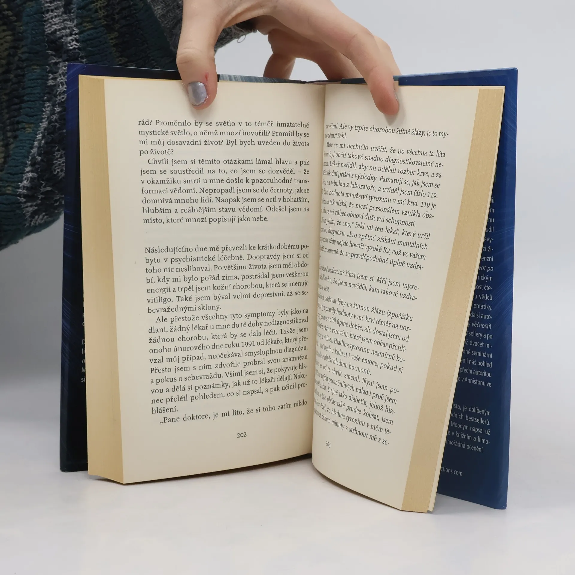 Světově proslulého amerického lékaře Raymonda Moodyho čeští čtenáři dávno dobře znají. Jeho nejnovější kniha je fascinující autobiografií, v níž autor vyprávěním o svém dětství, komplikovaném vztahu s otcem, o studiích a zájmu o posmrtný život a slavné „zážitky blízké smrti“. S nebývalou otevřeností píše o svých zdravotních problémech, které ho přivedly téměř k sebevraždě, o svých nezdařených manželstvích i o setkáních s mnoha známými osobnostmi.