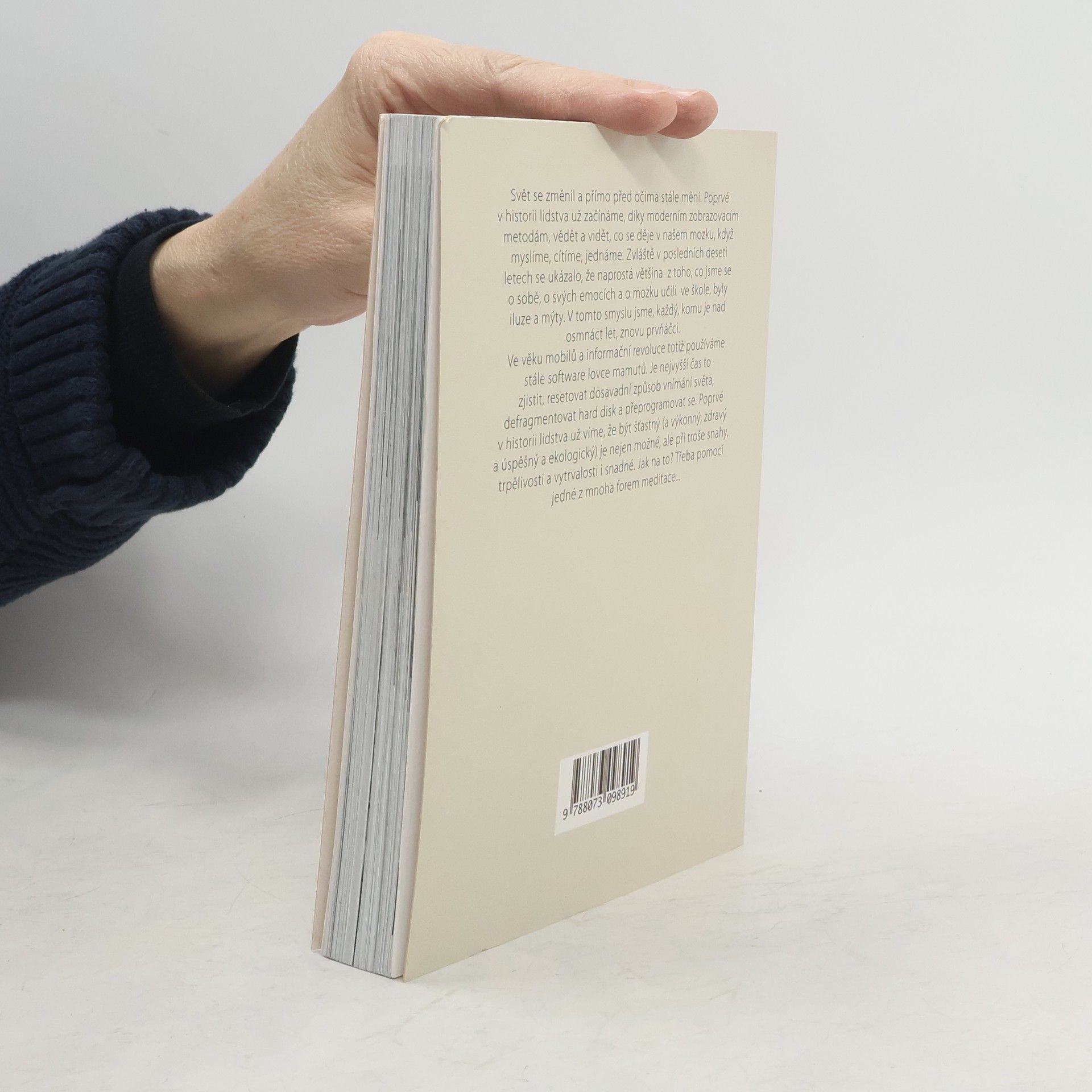 Svět se neustále mění a je čas zjistit náš skutečný software, resetovat vnímání světa, defragmentovat náš hard disk a přeprogramovat se. Být šťastný, zdravý a úspěšný je nyní nejen možné, ale při troše úsilí i snadné. Jak na to? Například pomocí meditace. Zatímco k mnoha věcem dostáváme návody, životní instrukce nám chybí. Dříve jsme se učili, že neurony v dospělosti zanikají, ale moderní technologie ukazují, že mozek je mnohem pružnější, než jsme si mysleli. V posledních letech se ukázalo, že většina informací o emocích a mozku byla iluzí. Dnes víme, že i nejnovější výzkumy v neurologii rychle zastarávají. Meditace má léčivé účinky a může se praktikovat různými způsoby, od chůze po zenové zahradě po bubnování. Svět je iluze a mozek nás nutí vidět věci podle svých představ. Lze se naučit umění štěstí a pozitivně přeprogramovat mysl. Autor shrnuje téměř třicet let zkušeností s meditací do unikátního návodu, který potvrzuje nejnovější vědecké poznatky. Tvrdí, že štěstí a zdraví jsou snadné, když víme jak, a jeho informace mohou zkvalitnit život v jakémkoliv věku a profesi.