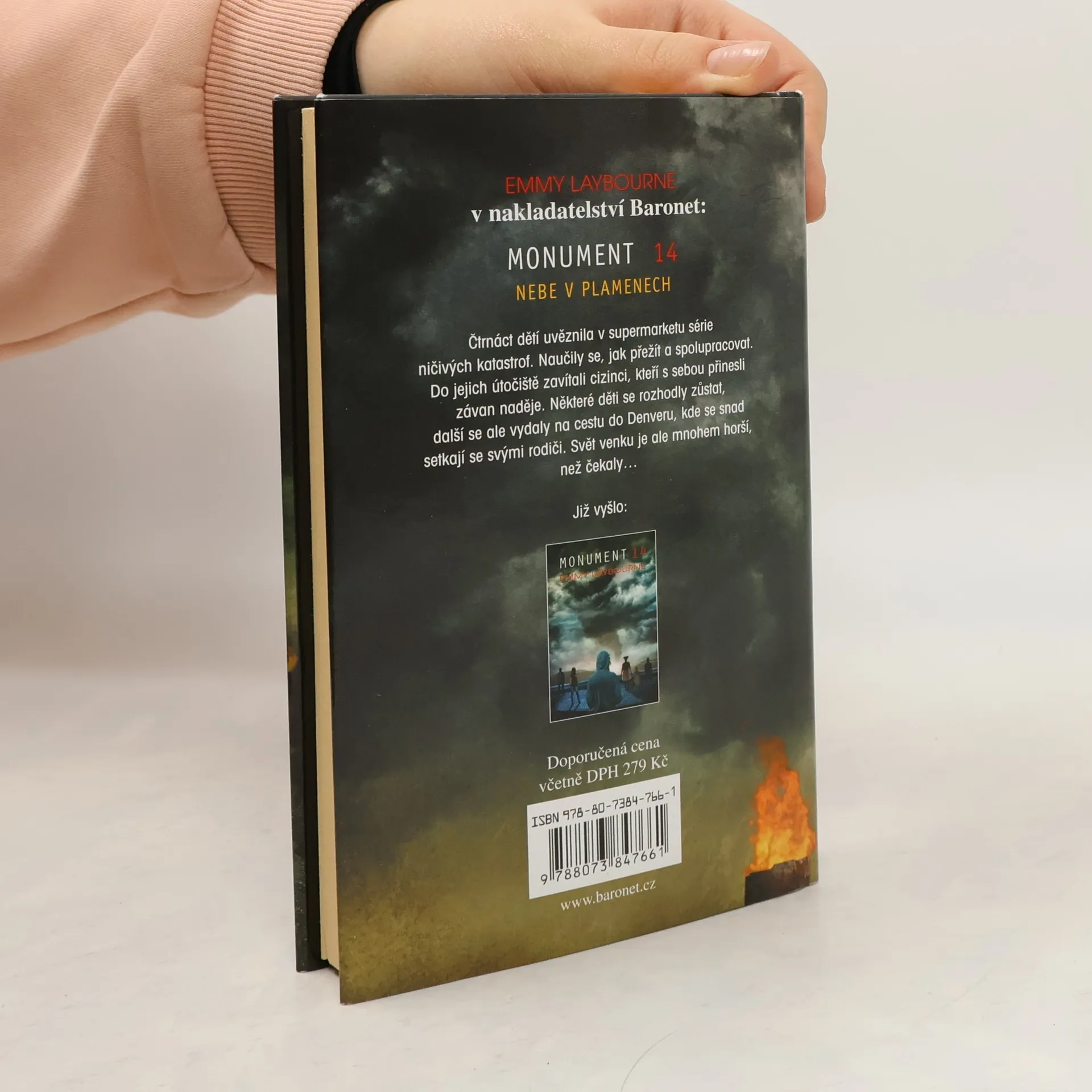 Svět neskončil… Ještě ne. V pokračování příběhu Monumentu 14 se skupina přeživších, donedávna uvězněných v supermarketu sérií ničivých katastrof, rozdělila ve dví. Většina dětí se v zoufalé snaze vydala opraveným autobusem na letiště v Denveru. Doufají, že se tam setkají se svými rodiči, budou odvezeni do bezpečí a zachrání svého umírajícího přítele. Ale svět venku je temný a zaplavený nebezpečnými chemikáliemi, které mění lidi v krvežíznivá monstra, a ne všechny děti jsou ochotné nastoupit do autobusu. V útočišti, jež bylo již jednou narušeno, se snaží zbývající děti obnovit přátelství. Ale pokud se máte rozhodnout mezi životem a smrtí, láskou a nenávistí, komu můžete doopravdy věřit?