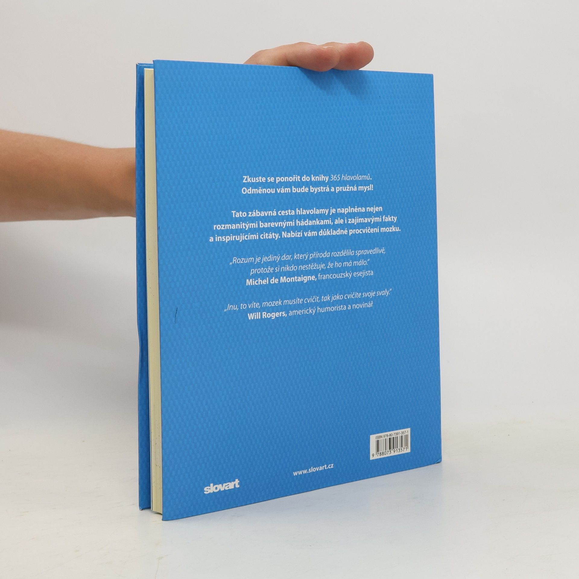 Sbírka logických, číselných i slovních hlavolamů a obrázkových hádanek ve třech variantách obtížnosti přináší úkol na každý den v roce pro celoroční důkladné procvičování mozku. Pilné čtenáře dovede až na vrchol duševní kondice. Autoři jsou známí angličtí tvůrci hlavolamů a hádanek, kteří přispívají do hádankářských časopisů a knih hlavolamů úspěšně prodávaných po celém světě. Pro zpestření je většina úkolů doplněna stručnými zajímavostmi z oblasti vědy, umění, dějin či sportu a doprovázena inspirativními citáty slavných osobností. Na konci knihy jsou umístěna řešení hlavolamů i vysvětlení jejich logických principů. Můžeme si tak ověřit, zda jsme úkol zvládli, popřípadě se podívat na rozluštění úkolu, se kterým si nevíme rady, a s další hádankou už se posuneme o úroveň výše!