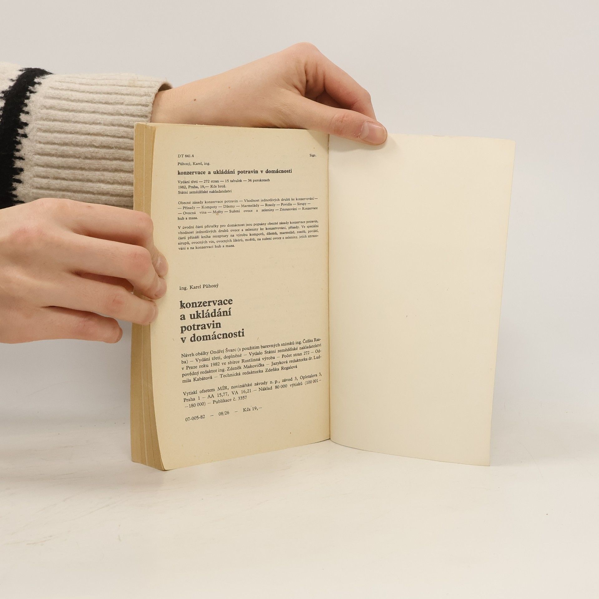 Praktická příručka pro domácnost, která po úvodních statích přináší návody na konzervování potravin; její předností je, že v žádném receptu nepoužívá chemické přísady. Probírá totiž pouze konzervování teplem (kompoty, mošty, protlaky, kečupy, sterilovaná zelenina a houby, zeleninové šťávy, zmrazováním (masa, hotových jídel včetně pečiva, vajec, mléčných výrobků, hub, ovoce,zeleniny), konzervaci cukrem (džemy, marmelády, rosoly, ovocné sirupy, proslazené ovoce), sušení, konzervování alkoholem (ovocná vína, alkoholizované mošty, ovoce v alkoholu, ovocné likéry), konzervaci octem (zelenina, houby v octě, aromatické octy), solením a uzením, konzervování vajec, skladování čerstvého ovoce a zeleniny.