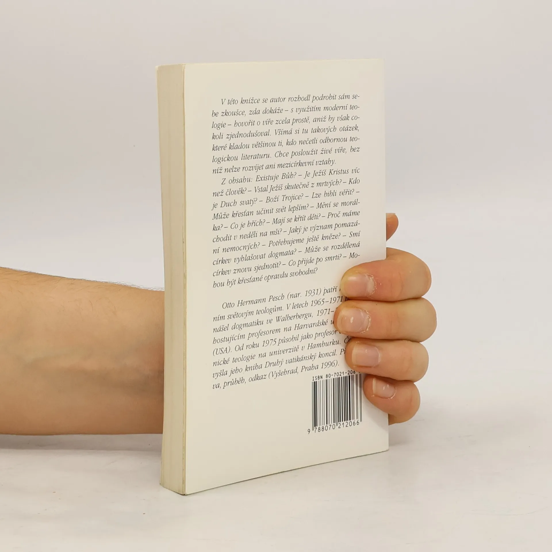 V této knížce se autor rozhodl podrobit sám sebe zkoušce, zda dokáže - s využitím moderní teologie - hovořit o víře zcela prostě, aniž by však cokoli zjednodušoval. Všímá si tu takových otázek, které kladou většinou ti, kdo nečetli odbornou teologickou literaturu. Z obsahu: Existuje Bůh? - Je Ježíš Kristus víc než člověk? - Lze Bibli věřit? - Co příjde po smrti?