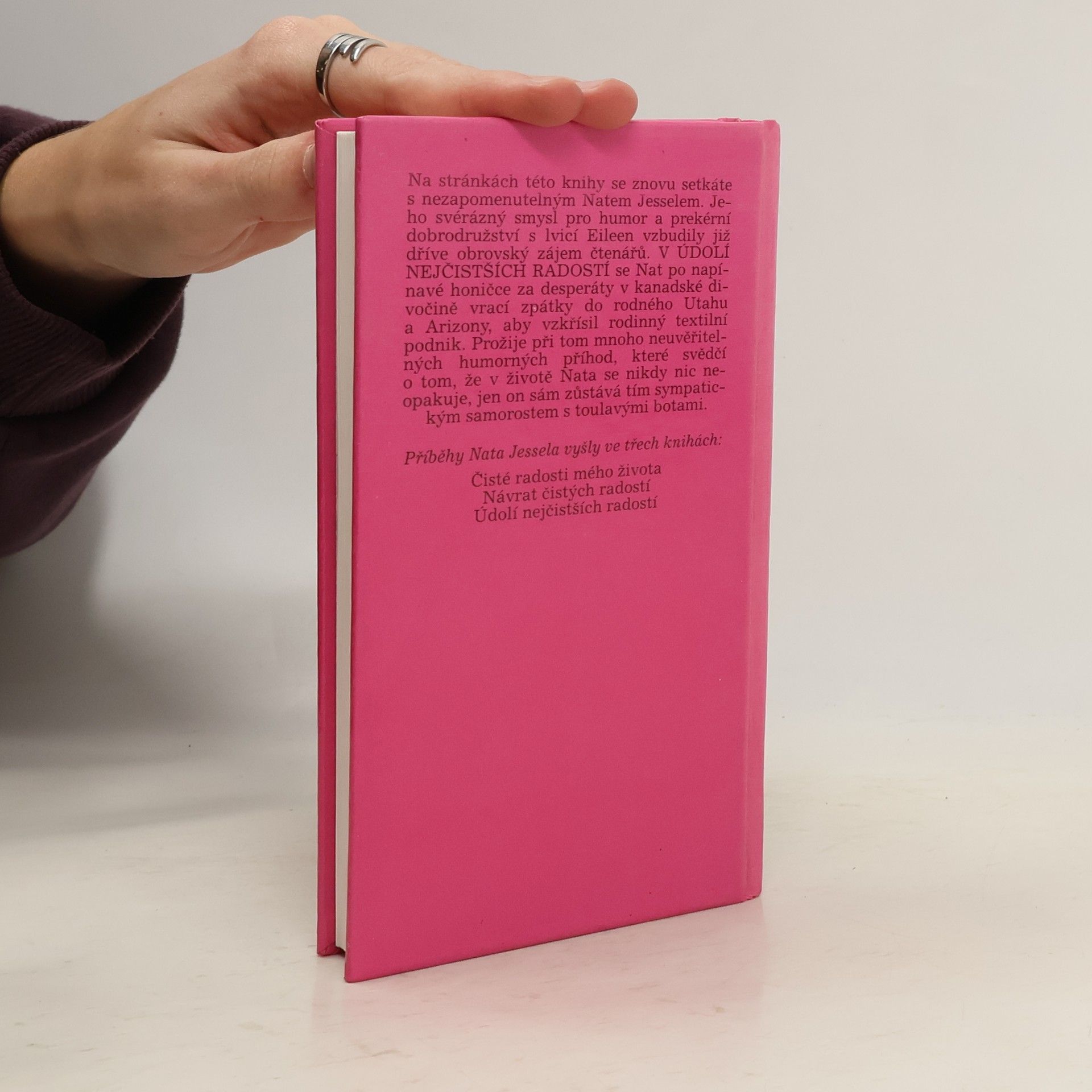 Na stránkách této knihy se znovu setkáte s nezapomenutelným Natem Jesselem. Jeho svérázný smysl pro humor a prekérní dobrodružství s lvicí Eileen vzbudily již dříve obrovský zájem čtenářů. V údolí nejčistších radostí se Nat po napínavé honičce za desperáty v kanadské divočině vrací zpátky do rodného Utahu a Arizony, aby vzkřísil rodinný textilní podnik. Prožije při tom mnoho neuvěřitelných humorných příhod, které svědčí o tom, že v životě Nata se nikdy nic neopakuje, jen on sám zůstává tím sypatickým samorostem s toulavými botami.... celý text