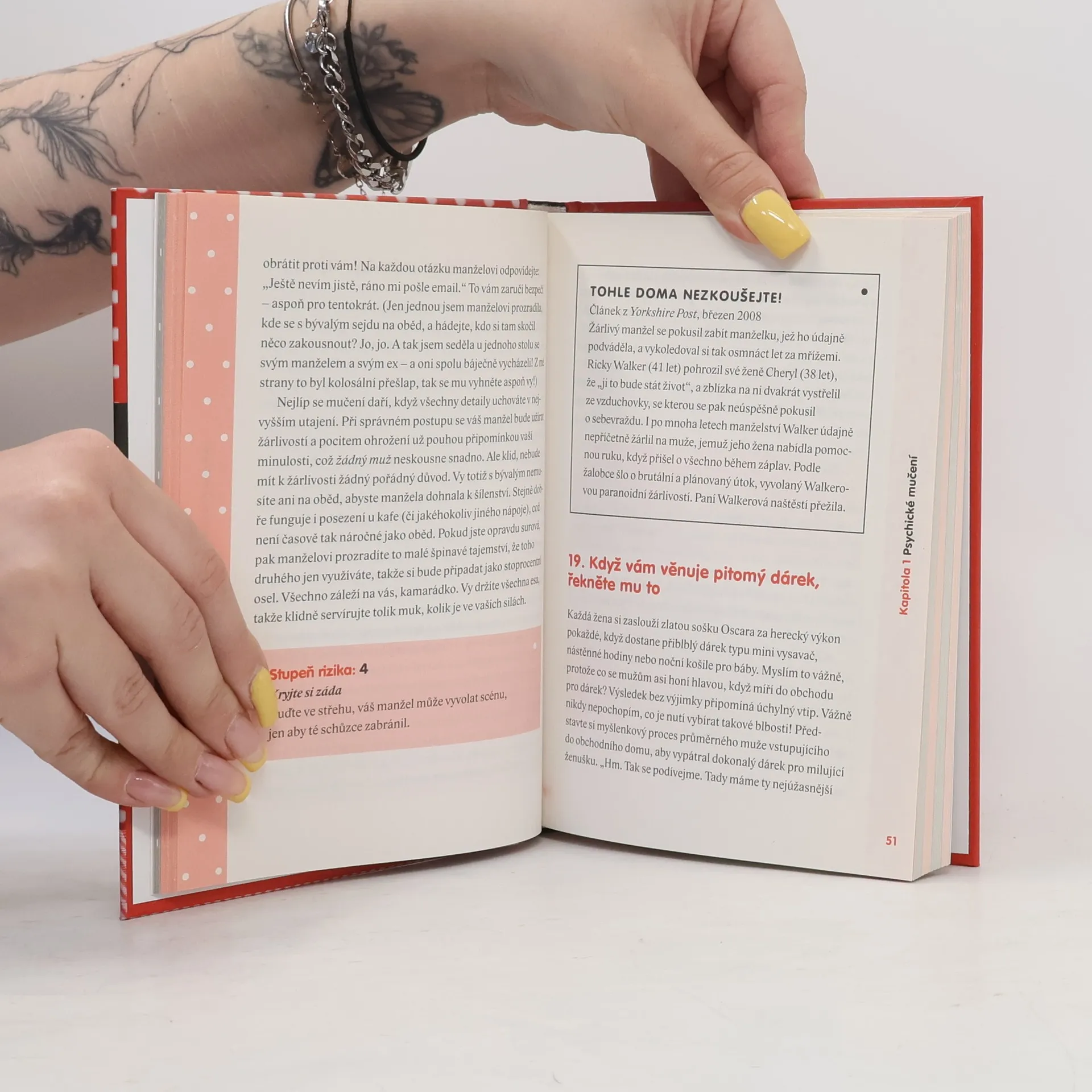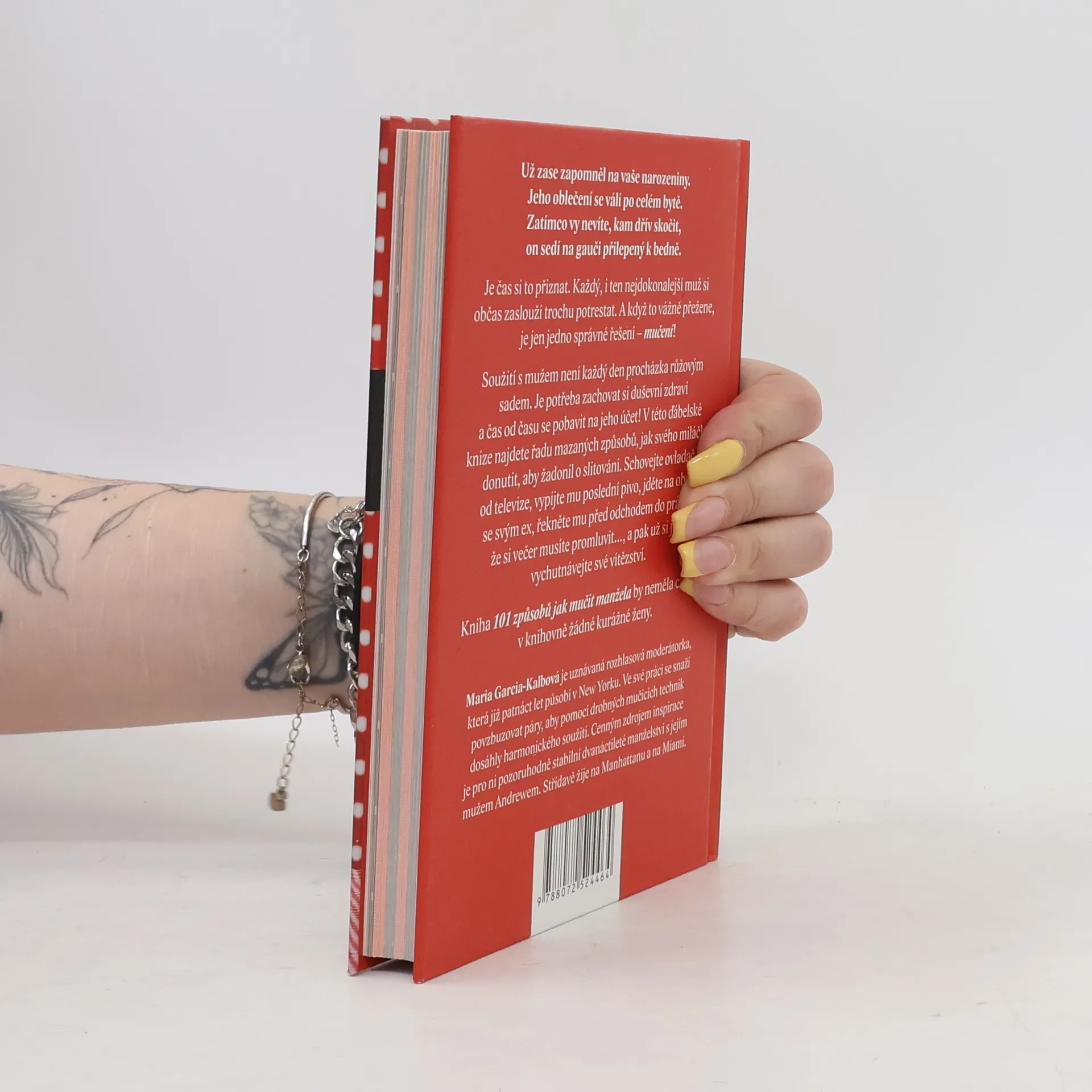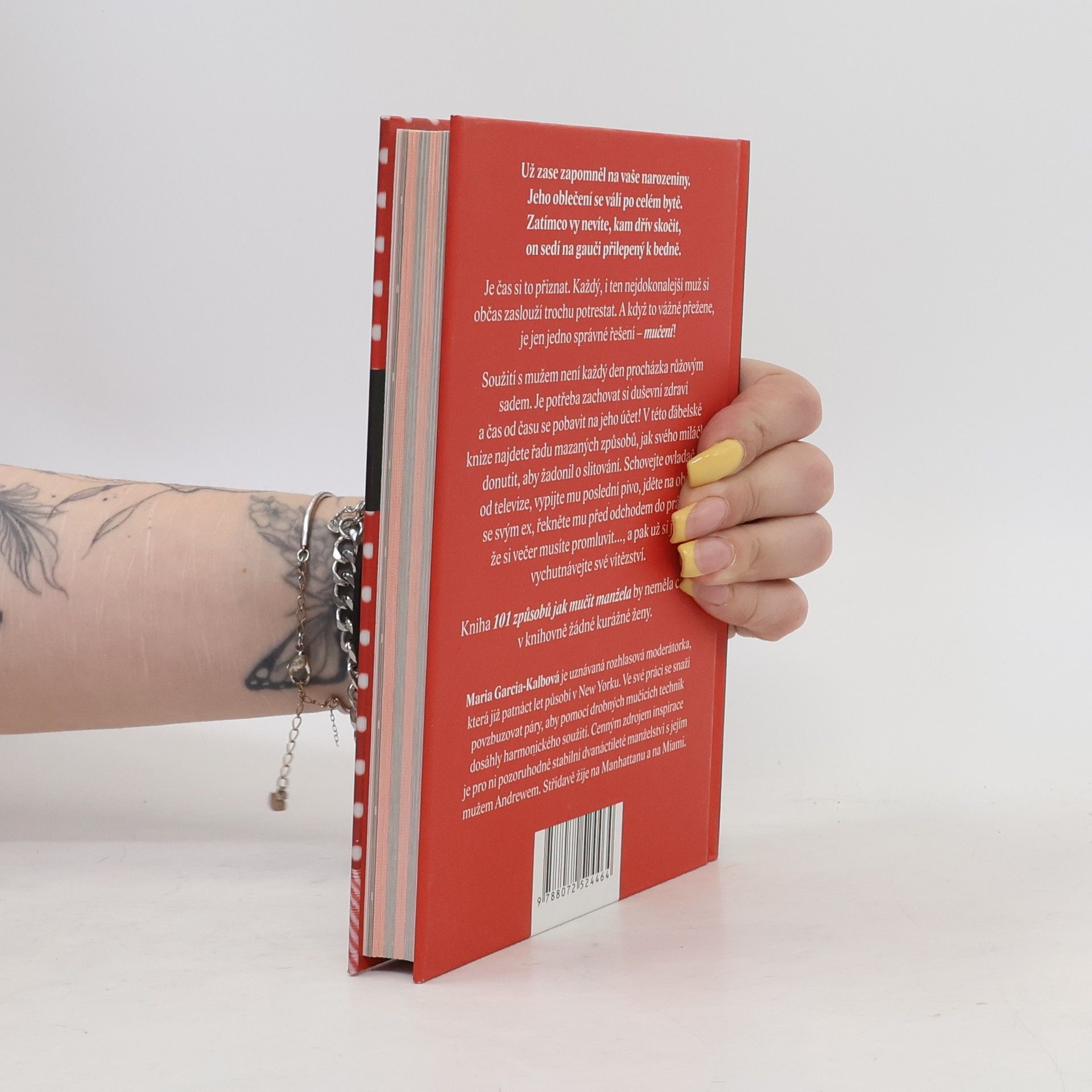 Už zase zapomněl na vaše narozeniny. Jeho oblečení se válí po celém bytě. Zatímco vy nevíte, kam dřív skočit, on sedí na gauči přilepený k bedně. Je čas si to přiznat. Každý, i ten nejdokonalejší muž si občas zaslouží trochu potrestat. A když to vážně přežene, je jen jedno správné řešení - mučení! Soužití s mužem není každý den procházka růžovým sadem. Je potřeba zachovat si duševní zdraví a čas od času se pobavit na jeho účet! V této ďábelské knize najdete řadu mazaných způsobů, jak svého miláčka donutit, aby žadonil o slitování. Schovejte ovladač od televize, vypijte mu poslední pivo, jděte na oběd se svým ex, řekněte mu před odchodem do práce, že si večer musíte promluvit,… a pak už si jen vychutnávejte své vítězství. Kniha 101 způsobů, jak mučit manžela by neměla chybět v knihovně žádné kurážné ženy.