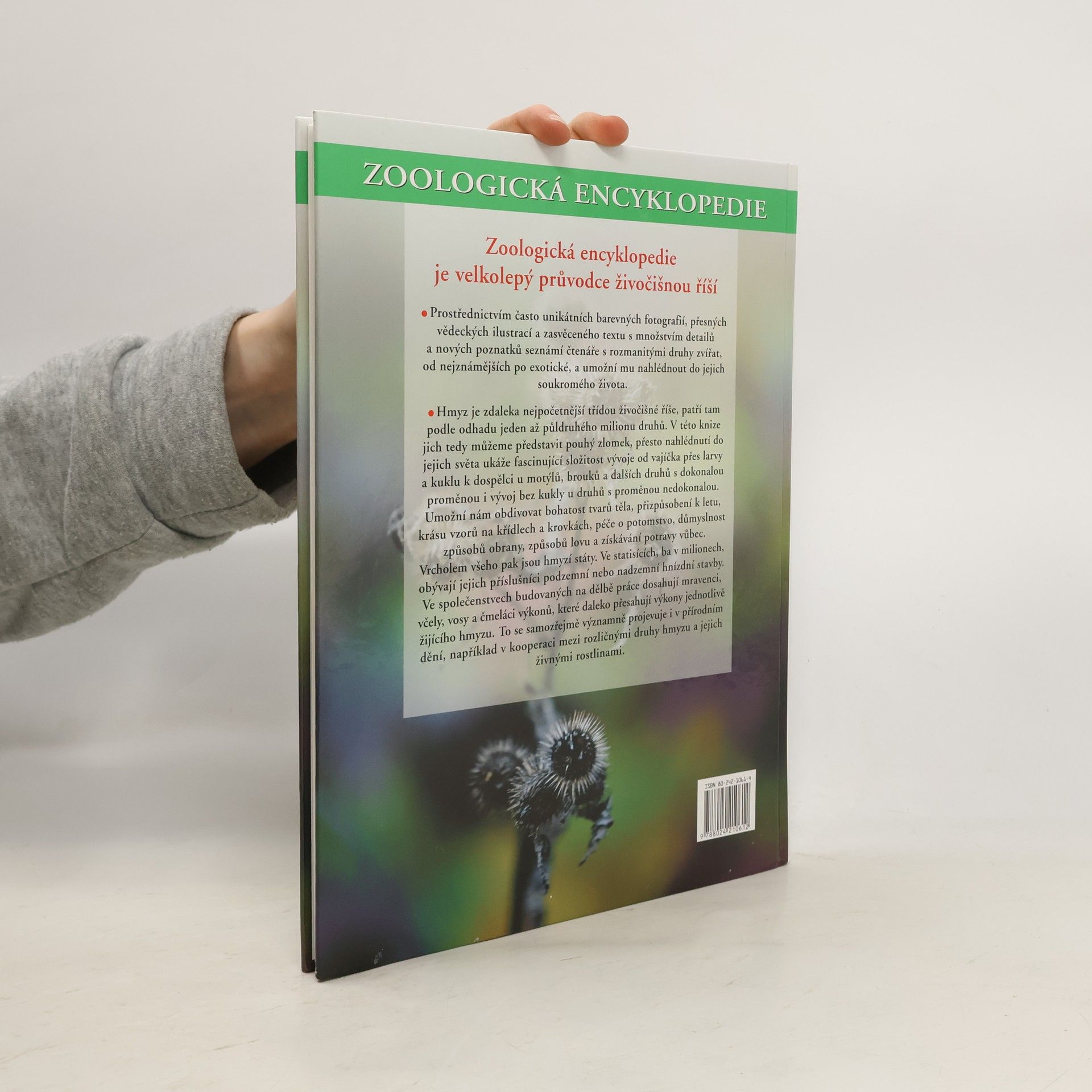 Velkolepý průvodce živočišnou říší s unikátními barevnými fotografiemi, přesnými vědeckými ilustracemi a zasvěceným textem Motýli a ostatní hmyz Hmyz je nejpočetnější třídou živočišné říše, s cca 1,5 milionem druhů. Kniha může proto představit pouze zlomek, přesto nám umožní poznat fascinující složitost vývoje od vajíčka přes larvy a kuklu k dospělci u motýlů i vývoj bez kukly u druhů s proměnou nedokonalou. Budeme obdivovat bohatost tvarů těla, přizpůsobení k letu, krásu vzorů na křídlech a krovkách, seznámíme se i se způsobem života motýlů a dalšího hmyzu. Seznámíme se s úžasnou organizací hmyzích států... Váz., 160 stran, 22 x 29,5 cm