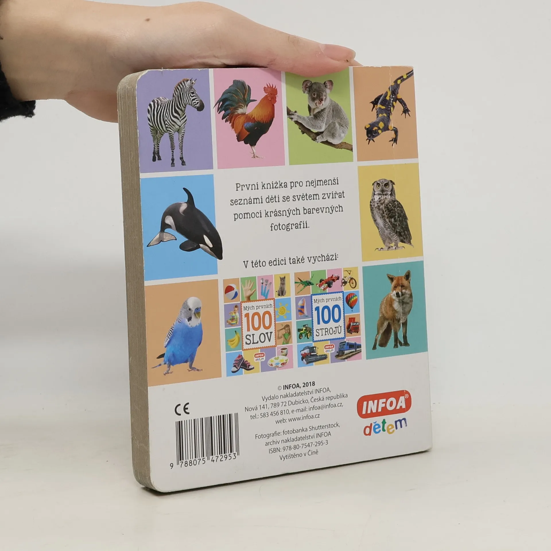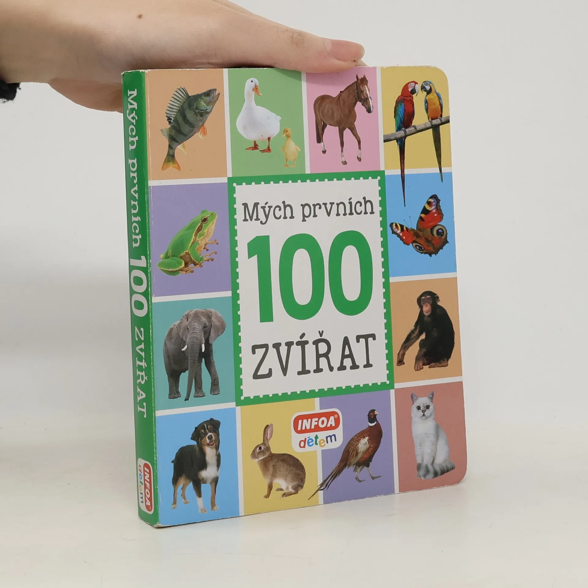 Kniha obsahuje 100 zvířat. Děti se naučí rozlišovat zvířata na domácí mazlíčky, na statku, na dvorku, na zahradě, na louce, na poli, v oblacích, v lese, u vody, v rybníku a řece, v horách, v savaně, v pralese, v krajinách ledu, v moři.