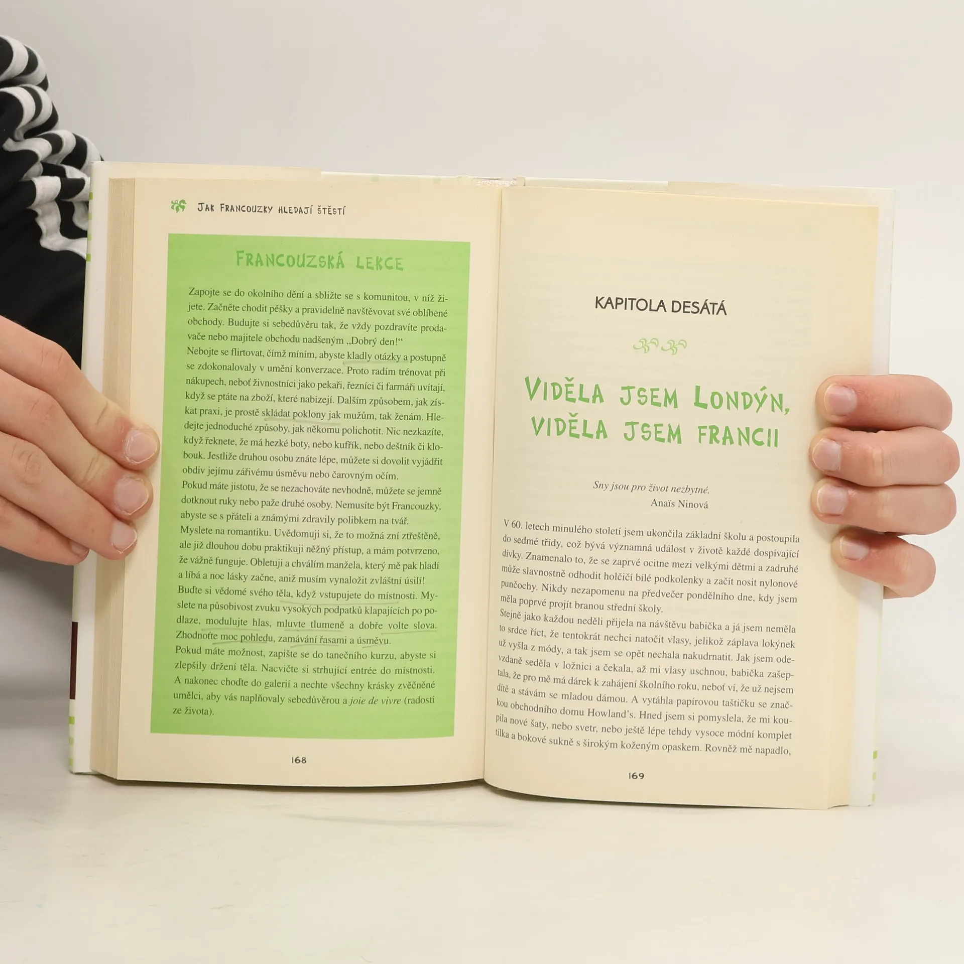 Francouzky vědí, jak se radovat ze života a slastně si vychutnat každý jeho okamžik. Když Jamie cestovala po Francii, zjistila, že Francouzky – ať lékařky, majitelky obchodů nebo ženy v domácnosti – se nezatěžují tím, zda jsou dost štíhlé, dost mladé a dost úspěšné. Stárnou s grácií a stále se o sebe starají. Vědí, jak udržovat život v rovnováze. Autorka vám s moudrostí i humorem poradí, jak se stát menšími konzumenty a více si užívat, jak za pár drobných vypadat jako za milion euro, jak flirtovat po francouzsku a znovu objevit ženskou záhadnost.