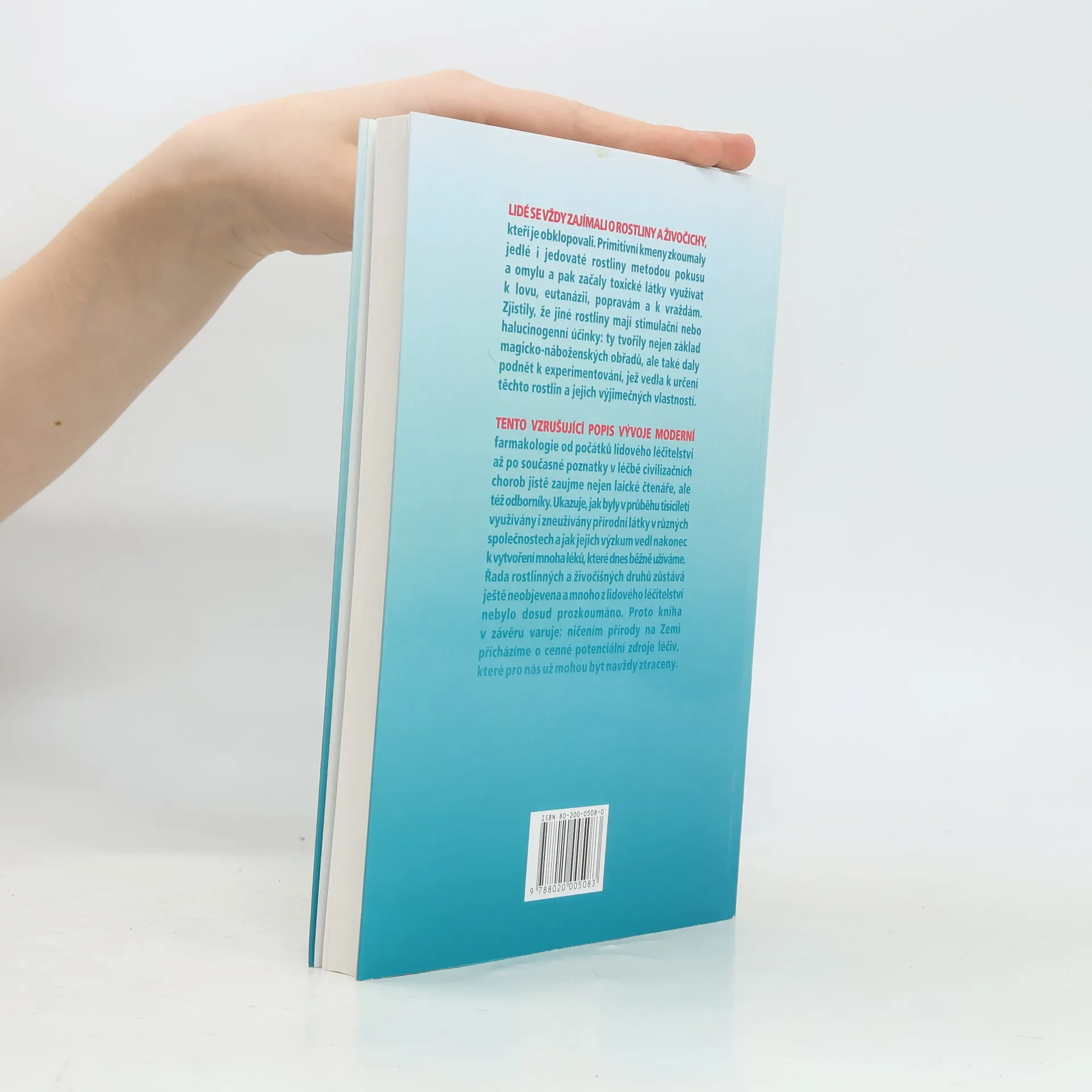 Tento vzrušující popis vývoje moderní farmakologie od počátků lidového léčitelství až po současné poznatky v léčbě civilizačních chorob jistě zaujme nejen laické čtenáře, ale též odborníky. Ukazuje, jak byly v průběhu tisíciletí využívány i zneužívány přírodní látky v různých společnostech a jak jejich výzkum vedl nakonec k vytvoření mnoha léků, které dnes běžně užíváme. Řada rostlinných i živočišných druhů zůstává ještě neobjevena a mnoho z lidového léčitelství nebylo ještě prozkoumáno. Proto kniha v závěru varuje: ničením přírody na Zemi přicházíme o cenné potenciální zdroje léčiv, které pro nás už mohou být navždy ztraceny.