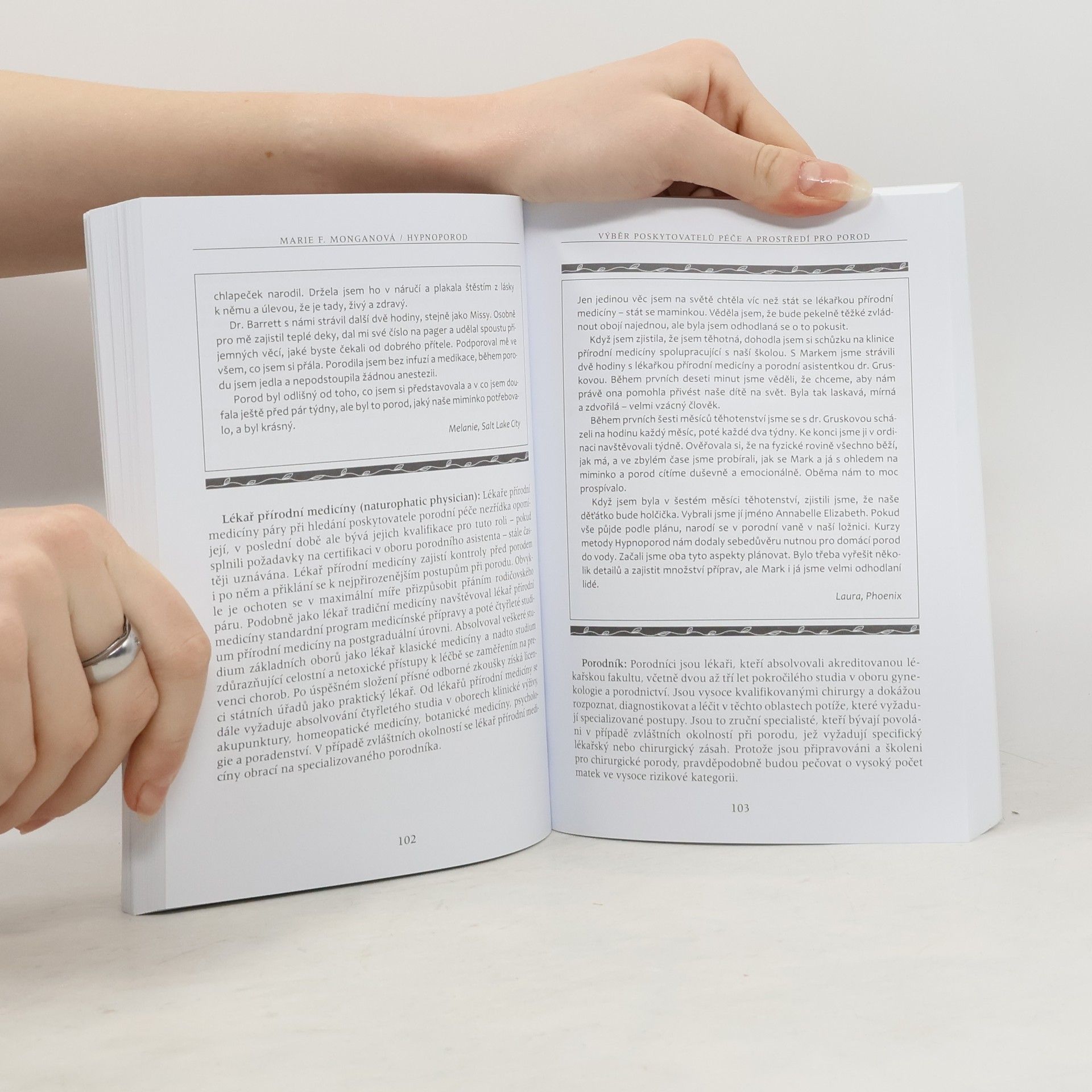 Česká republika patří k zemím, kde se většina žen porodu bojí. Často nemají jiné přání, než ho mít rychle za sebou. To první, co většinu dnešních žen v souvislosti s porodem napadá, je vědomí rizika a hrůza z bolesti. Autorka neprosazuje hypnoporody za přítomnosti odborného hypnotizéra, nýbrž vede každou jednu ženu ke schopnosti autohypnózy. Nejde tu o nic víc než o nejhlubší uvolnění, relaxaci, vnoření se do vlastního těla za současného odpojení racionálního vnímání, které umí spolehlivě zastavit jak orgasmus, tak spontánní porodní proces. Možná s autorkou nebudeme ve všem souhlasit, přesto připomíná podstatné. Těhotným a rodícím ženám skrytou moudrost a sílu jejich těl a těm, kdo o nastávající matky pečují, důležitost respektu a empatie.
