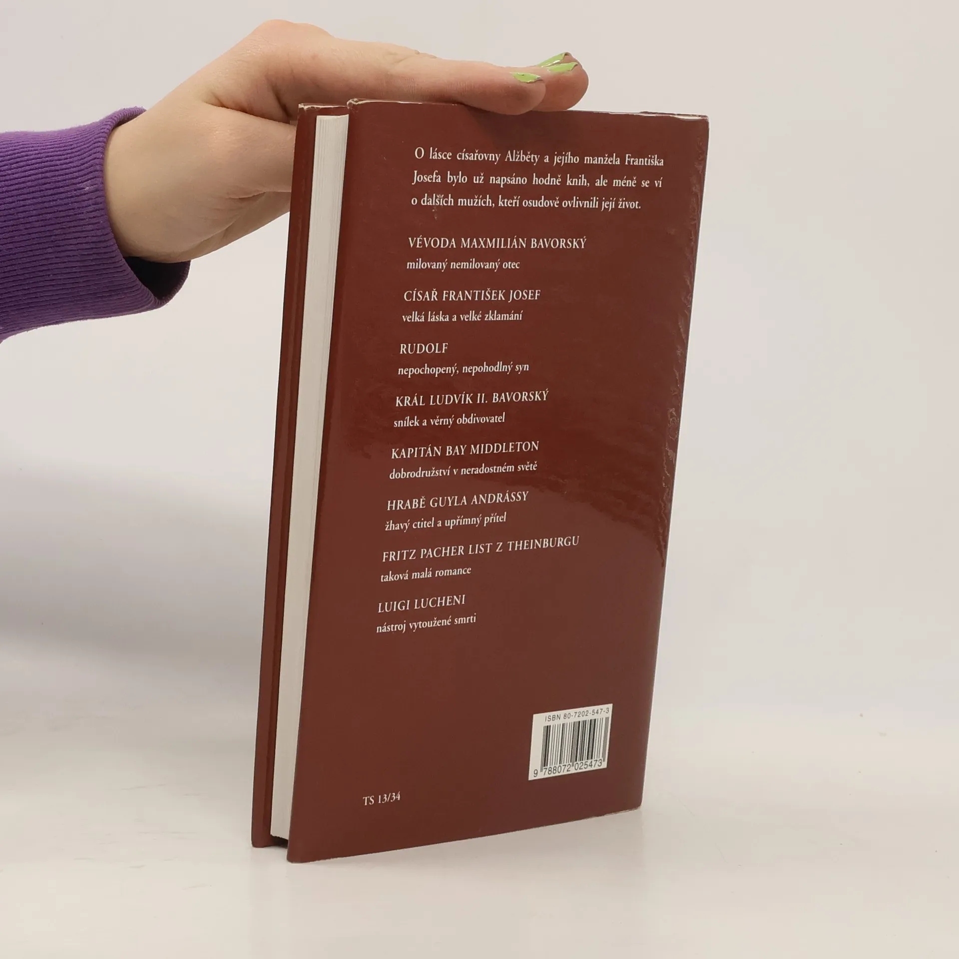Kniha pojednává o mužích císařovny Alžběty zvané Sissi. Vévoda Maxmilián Bavorský byl milovaný-nemilovaný otec, císař František Josef kterého milovala na dálku. Nepochopený syn Rudolf, snil o ní svůj nedosažitelný sen král Ludvík II. Bavorský. Upřímný přitel hrabě Guyla Andrássy, taková malá romance s Erzistem Pacher z Theiburgu a Luigi Lucheni ji přinesl vytouženou smrt.