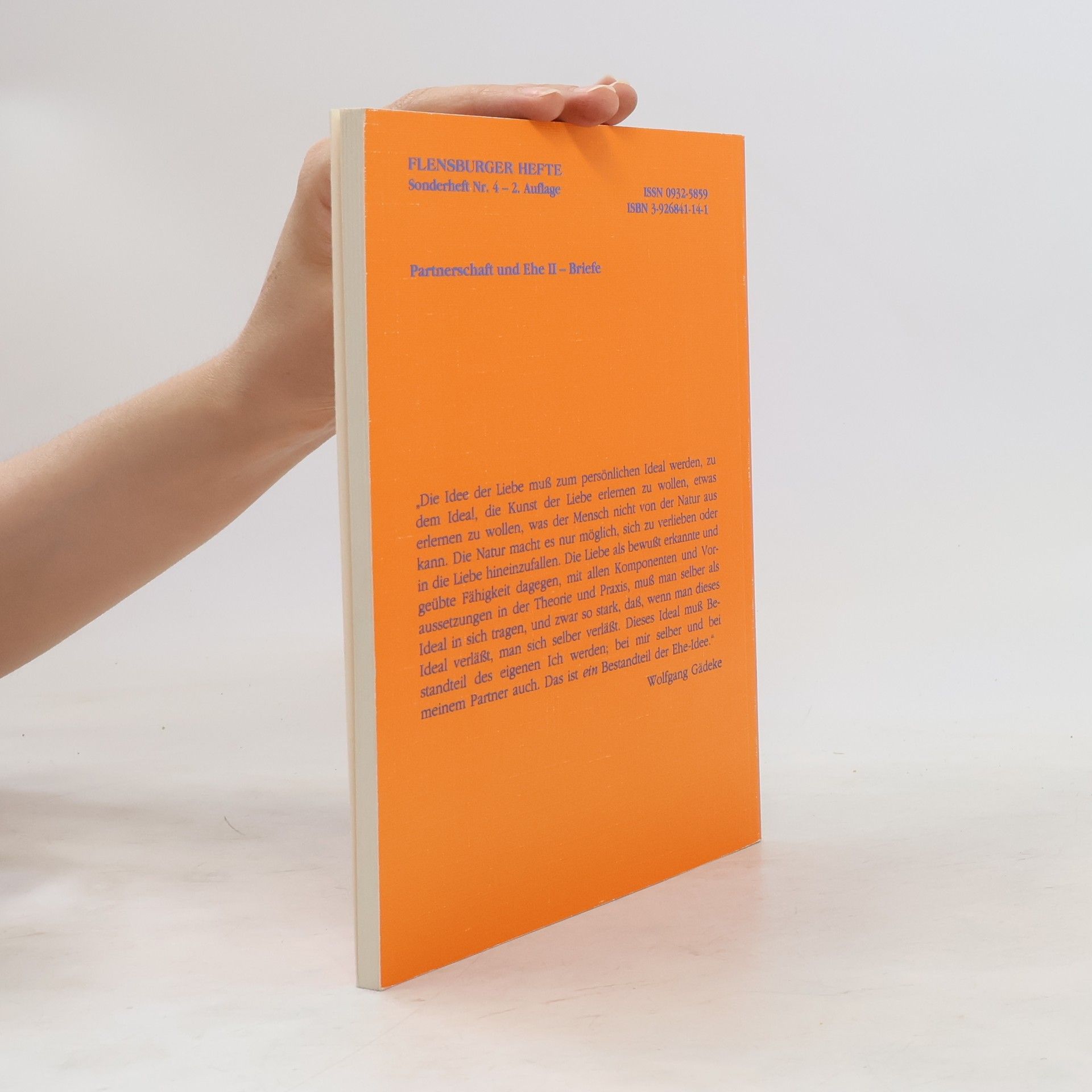 "Die Idee der Liebe muß zum persönlichen Ideal werden, zu dem Ideal, die Kunst der Liebe erlernen zu wollen; etwas erlernen zu wollen, was der Mensch nicht von der Natur aus kann. Die Natur macht es nur möglich, sich zu verlieben oder in die Liebe hineinzufallen. Die Liebe als bewußt erkannte und geübte Fähigkeit dagegen, mit allen Komponenten und Voraussetzungen in der Theorie und Praxis, muß man selber als Ideal in sich tragen, und zwar so stark, daß, wenn man dieses Ideal verläßt, man sich selbst verläßt. Dieses Ideal muß Bestandteil des eigenen Ich werden; bei mir selbst und bei meinem Partner auch. Das ist ein Bestandteil der Ehe-Idee." ( Wolfgang Gädeke ) In diesem Band veröffentlichen wir persönliche Lebensberichte über Sexualität, Ehe-Führung und Partnerschaft.
