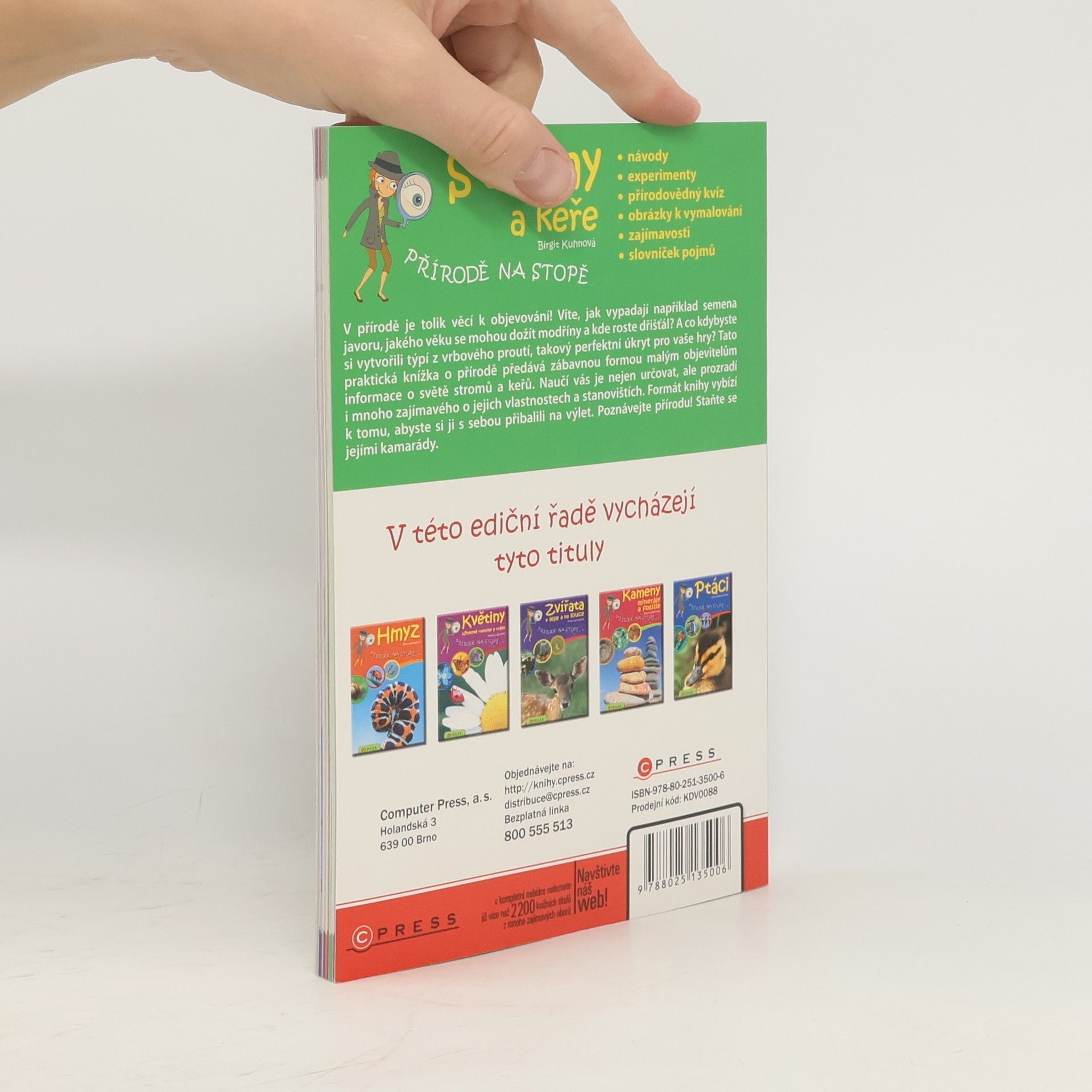 V přírodě je tolik věcí k objevování! Víte, jak vypadají například semena javoru, jakého věku se mohou dožít modříny a kde roste dřišťál? A co kdybyste si vytvořili týpí z vrbového proutí, takový perfektní úkryt pro vaše hry? Tato praktická knížka o přírodě předává zábavnou formou malým objevitelům informace o světě stromů a keřů. Naučí vás je nejen určovat, ale prozradí i mnoho zajímavého o jejich vlastnostech a stanovištích. Formát knihy vybízí k tomu, abyste si ji přibalili s sebou na výlet. Poznávejte přírodu! Staňte se jejími kamarády.