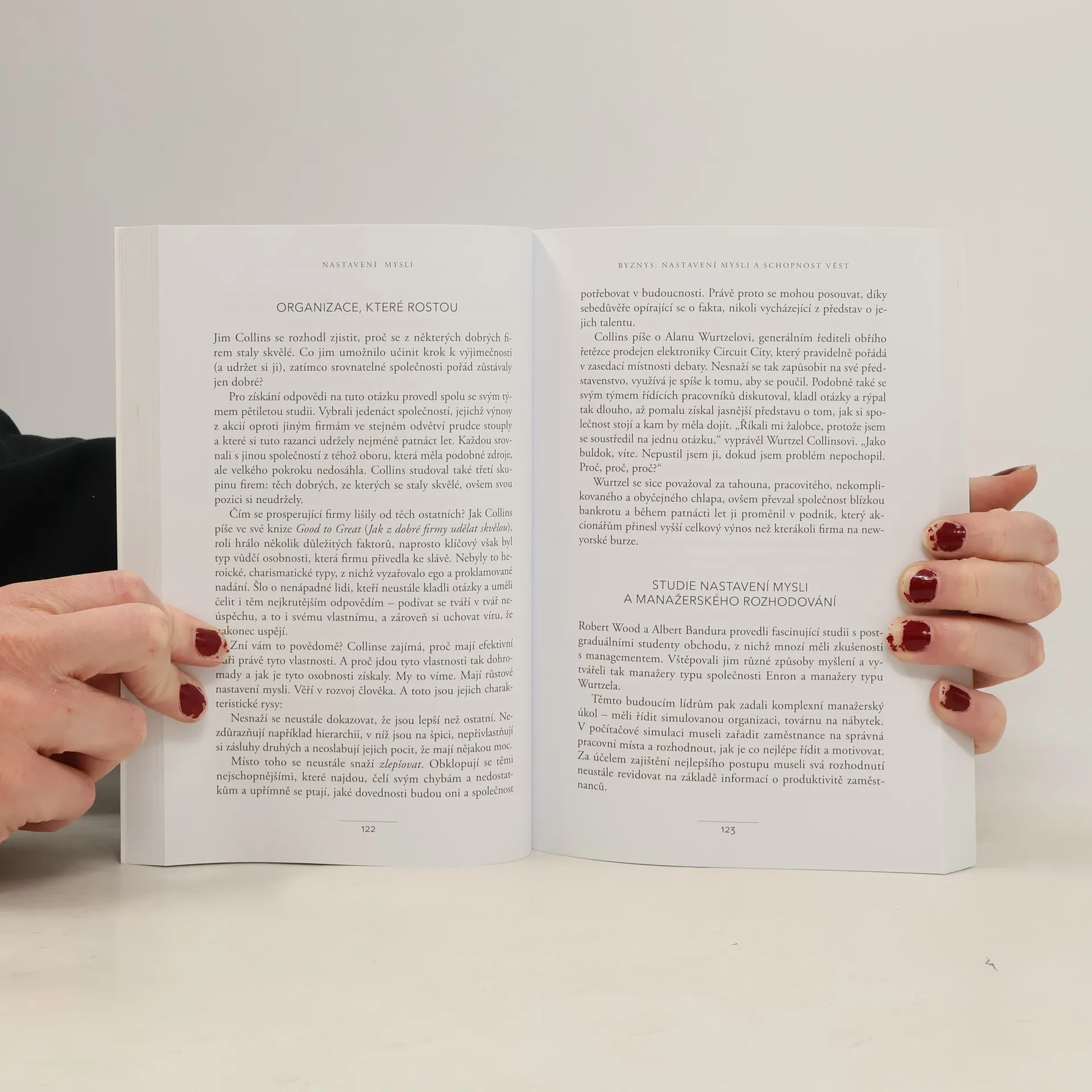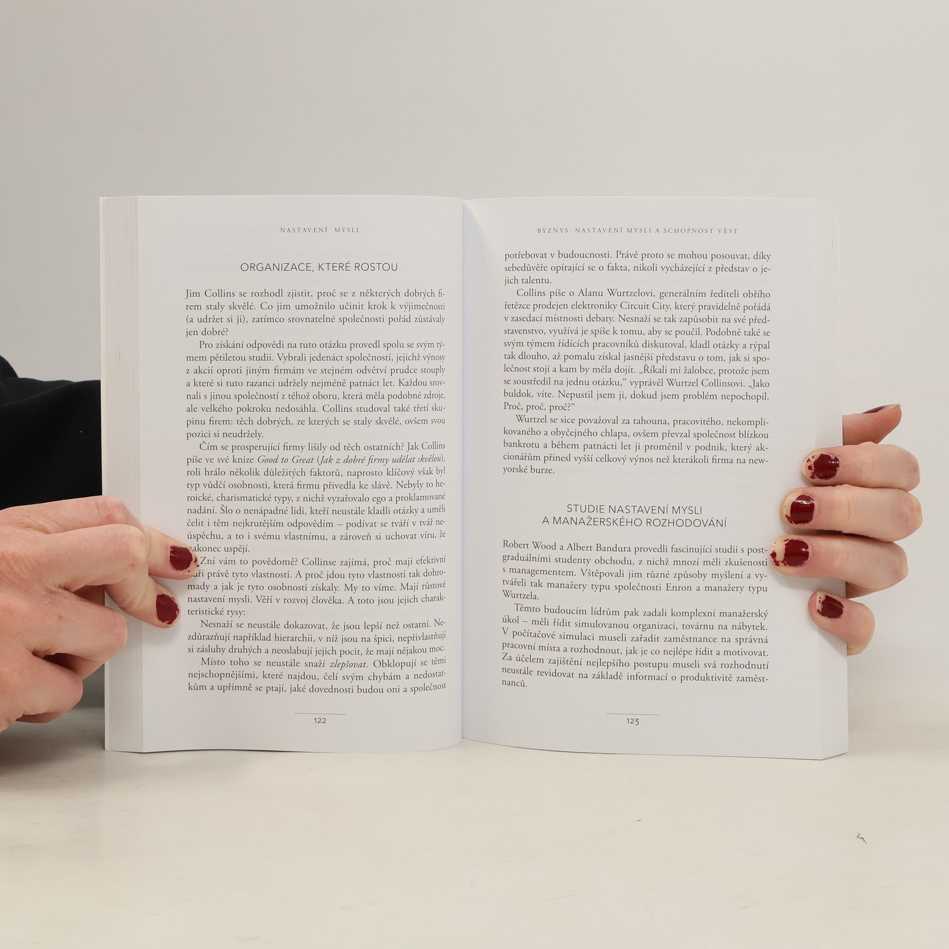Jednoduchá myšlenka, kolem níž se tato kniha točí, a za níž stojí desítky let vědeckého výzkumu, se dá vyjádřit zhruba takto: úspěch máme ve svých hlavách. Profesorka Dwecková se svým týmem na Standfordské univerzitě zjistila, že svou přirozeností tíhneme ke dvěma relativně vyhraněným způsobům myšlení o sobě a své úspěšnosti: k myšlení růstovému a myšlení fixnímu (angl. „growth mindset“ a „fixed mindset“). To, které myšlení u nás převládá, pak významně ovlivňuje naši reálnou úspěšnost. Ke zjištěním Dweckové popsaným v knize patří nadějný závěr, že se navzdory své dispozici dokážeme během života změnit, a autorka ukazuje, jak na to: jak využít svůj plný potenciál. Chcete vědět, jak přesně se dva zmíněné typy myšlení projevují? Typickým rysem fixního myšlení je vzdávání se před překážkou, neschopnost přijímat zpětnou vazbu, špatný pocit při vnímání úspěchu ostatních, vyhýbání se výzvám a negativní postoj k úsilí jako takovému. Naopak růstové myšlení se projevuje vřelým vztahem k výzvám, vytrvalostí při čelení překážkám, pozitivním vztahem ke kritice. Růstově myslící člověk vnímá úsilí jako cestu k mistrovství a v úspěchu druhých vidí inspiraci.