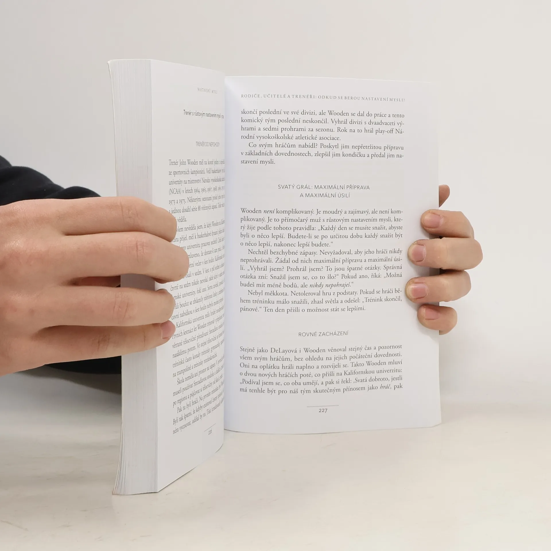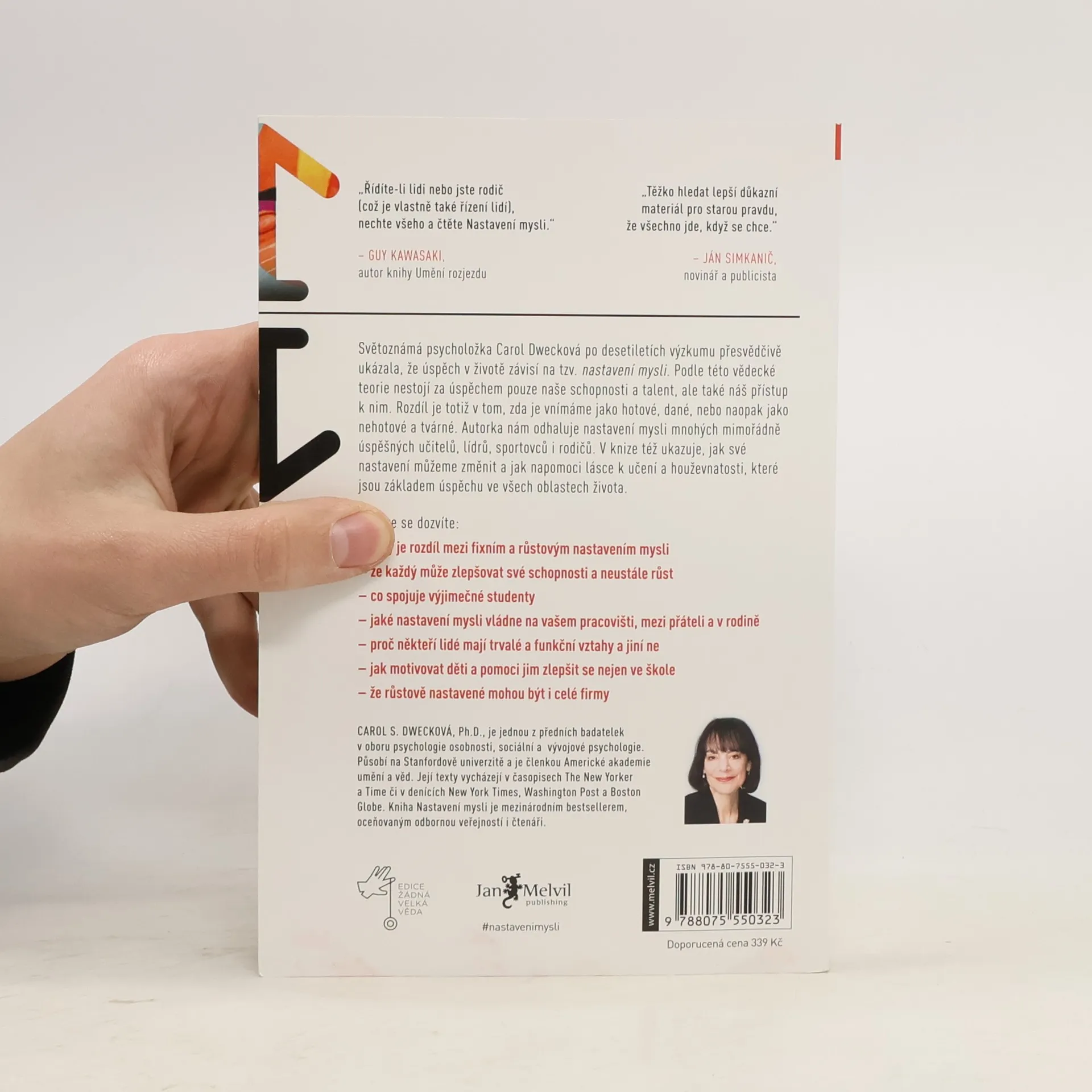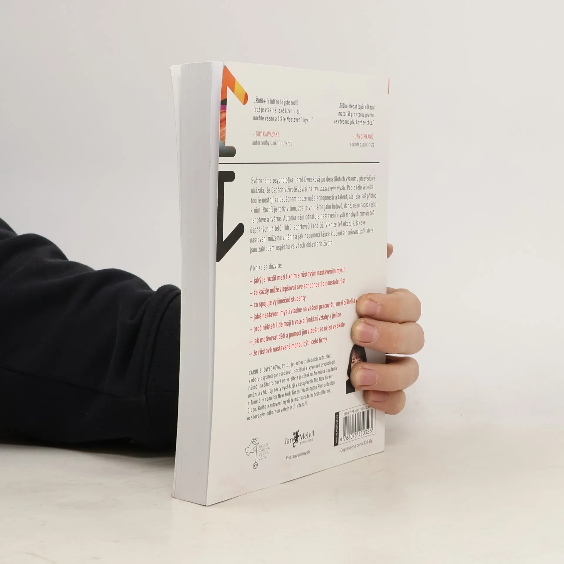 Jednoduchá myšlenka, kolem níž se tato kniha točí, a za níž stojí desítky let vědeckého výzkumu, se dá vyjádřit zhruba takto: úspěch máme ve svých hlavách. Profesorka Dwecková se svým týmem na Standfordské univerzitě zjistila, že svou přirozeností tíhneme ke dvěma relativně vyhraněným způsobům myšlení o sobě a své úspěšnosti: k myšlení růstovému a myšlení fixnímu (angl. „growth mindset“ a „fixed mindset“). To, které myšlení u nás převládá, pak významně ovlivňuje naši reálnou úspěšnost. Ke zjištěním Dweckové popsaným v knize patří nadějný závěr, že se navzdory své dispozici dokážeme během života změnit, a autorka ukazuje, jak na to: jak využít svůj plný potenciál. Chcete vědět, jak přesně se dva zmíněné typy myšlení projevují? Typickým rysem fixního myšlení je vzdávání se před překážkou, neschopnost přijímat zpětnou vazbu, špatný pocit při vnímání úspěchu ostatních, vyhýbání se výzvám a negativní postoj k úsilí jako takovému. Naopak růstové myšlení se projevuje vřelým vztahem k výzvám, vytrvalostí při čelení překážkám, pozitivním vztahem ke kritice. Růstově myslící člověk vnímá úsilí jako cestu k mistrovství a v úspěchu druhých vidí inspiraci.
