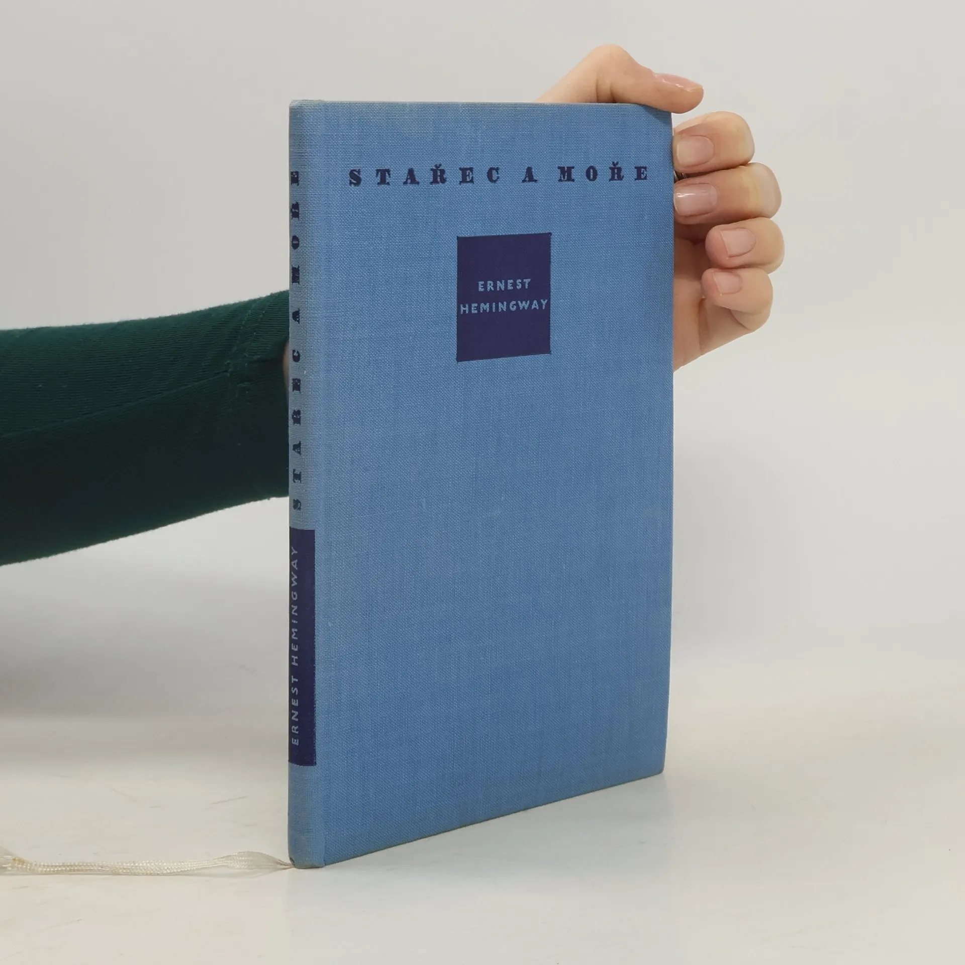 Starý rybář vyjíždí na sklonku svých dní na moře, přemůže obrovskou velrybu a vrací se s její kostrou, když byl jeho úlovek napaden žraloky. V tomto prostém ději je symbolisován odvěký zápas člověka s přírodou, nezadržitelnost ovládání přírody člověkem. Stařec ač sám uprostřed širokých vod, s nimiž srostl a dokonale je zná, není sám. Myslí na chlapce, kterého učil lovit, ví, že se o něj na břehu starají druzi. Vrací se z lovu s prázdnou vysílen a raněn. Přesto jeho příběh není pesimistický, naopak, brzy se s chlapcem vydají na nový lov. Novela (v r. 1954 Nobelova cena) výrazně ukazuje osobitý autorův vztah ke světu, způsob jeho vidění reality i způsob vyjádření. Je to oslava lidské statečnosti a houževnatosti.