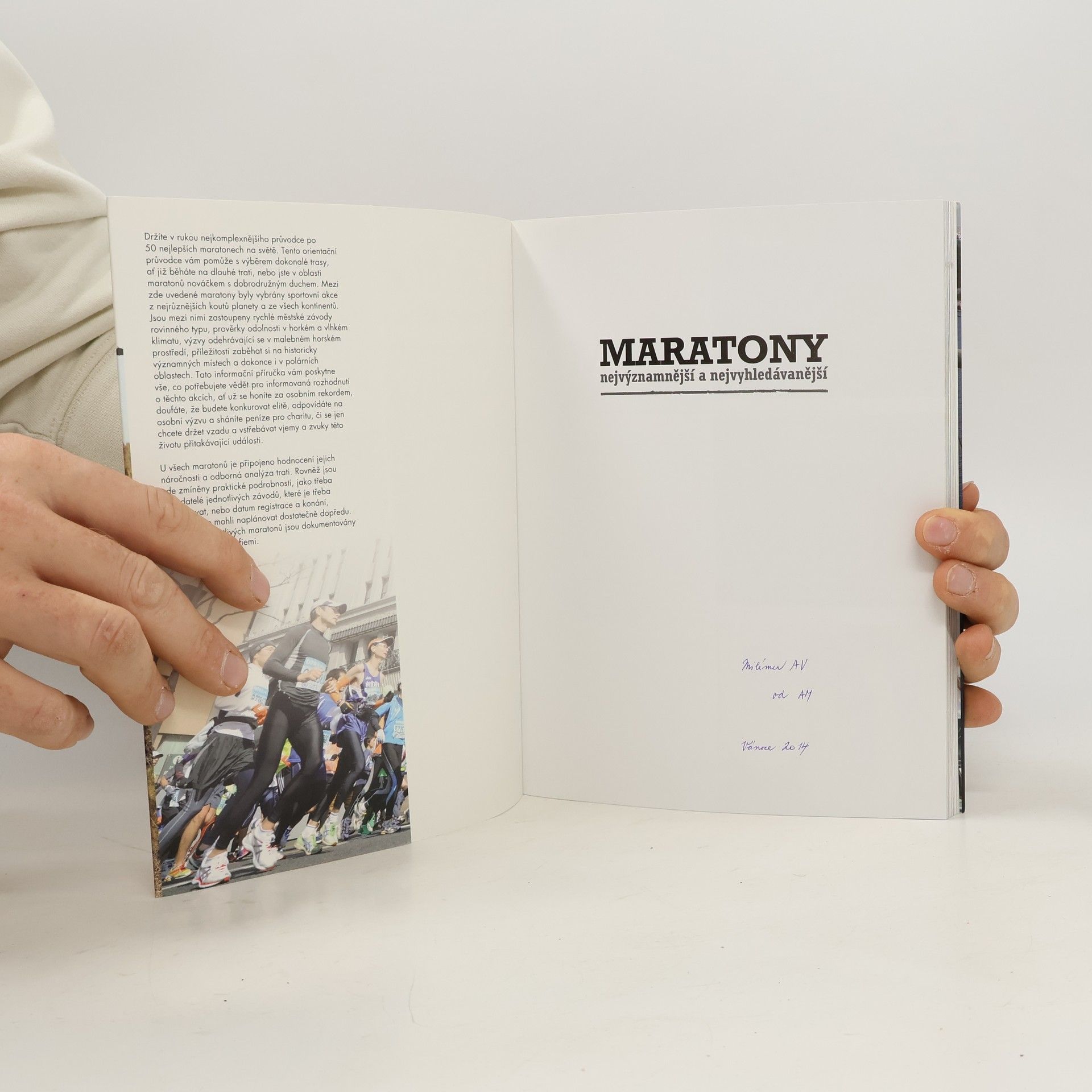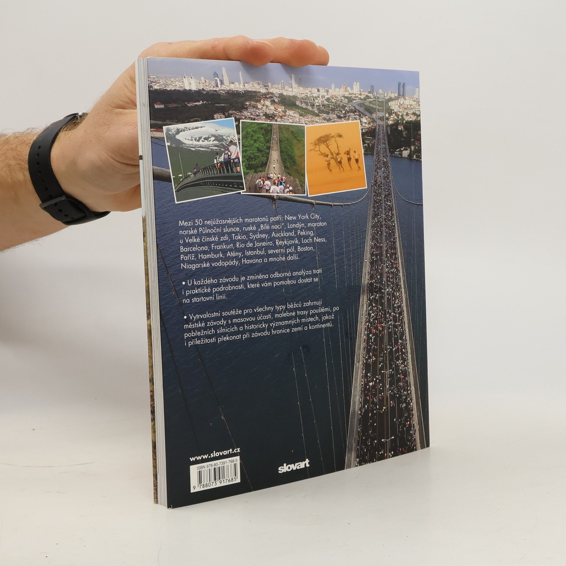 Nejkomplexnějšího průvodce po 50 nejlepších maratonech na světě. Pomůže vám s výběrem vhodné trasy, ať již běháte na dlouhé trati, nebo jste v oblasti maratonů nováčkem dobrodružného ducha. Mezi uvedené maratony byly vybrány sportovní akce z nejrůznějších koutů planety a ze všech kontinentů. Jsou mezi nimi zastoupeny rychlé městské závody rovinného typu, prověrky odolnosti v horkém a vlhkém klimatu, výzvy odehrávající se v malebném horském prostředí, příležitosti zaběhat si na historicky významných místech a dokonce i v polárních oblastech. V knize naleznete vše, co potřebujete vědět pro informovaná rozhodnutí o těchto akcích, ať již se honíte za osobním rekordem, doufáte, že budete konkurovat elitě, odpovídáte na osobní výzvu a sháníte peníze pro charitu či se jen chcete držet zpátky a vstřebávat vjemy a zvuky této životu přitakávající události.