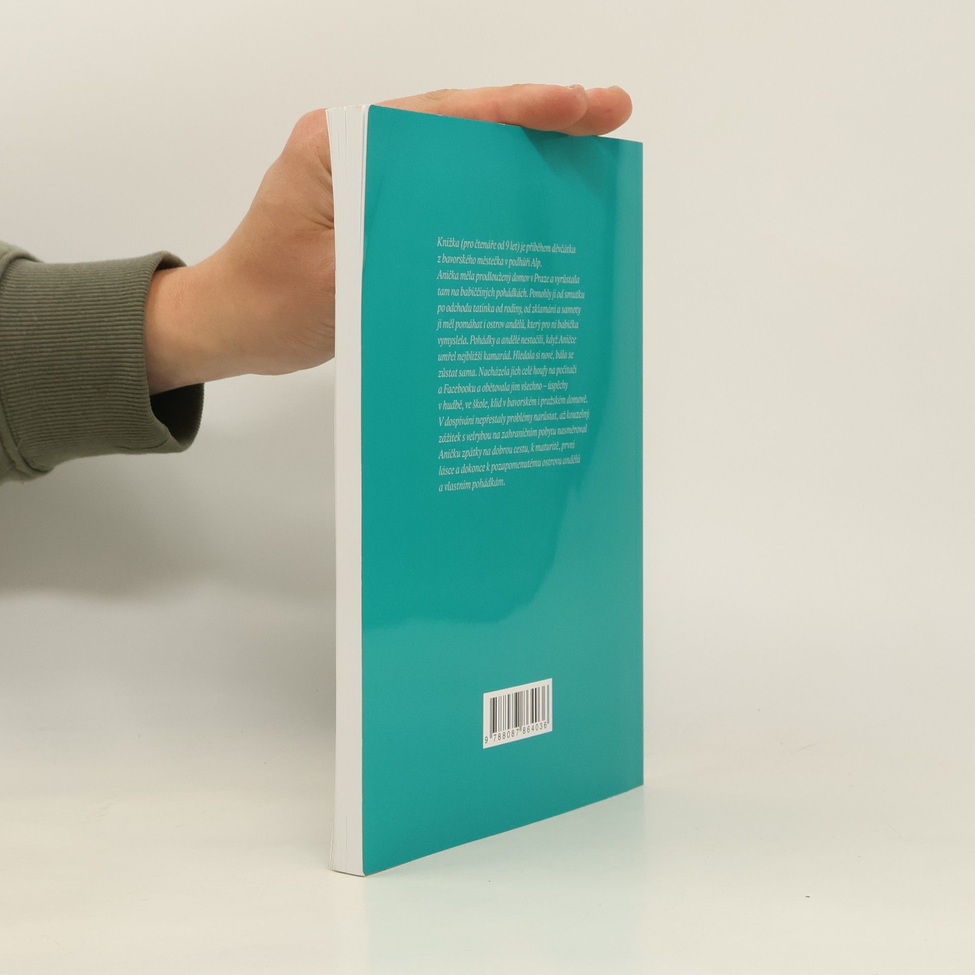 Knížka (pro čtenáře od 9 let) je příběhem děvčátka z bavorského městečka v podhůří Alp. Anička mela prodlouženy domov v Praze a vyrůstala tam na babiččiných pohádkách. Pomohly jí od smutku po odchodu tatínka od rodiny, od zklamání a samoty jí měl pomáhat i ostrov andělů, který pro ni babická vymyslela. Pohádky a andělé nestačili, když Aničce umřel nejbližší kamarád. Hledala si nové, bála se zůstat sama. Nacházela jich celé houfy na počítači a Facebooku a obětovala jim všechno - úspěchy v hudbě, veskole, klid v bavorském iprazském domové. V dospívání nepřestaly problémy narůstat, až kouzelný zážitek s velrybou na zahraničním pobytu nasměroval Aničku zpátky na dobrou cestu, k maturitě, první lásce a dokonce k pozapomenutému ostrovu andělů a vlastním pohádkám.