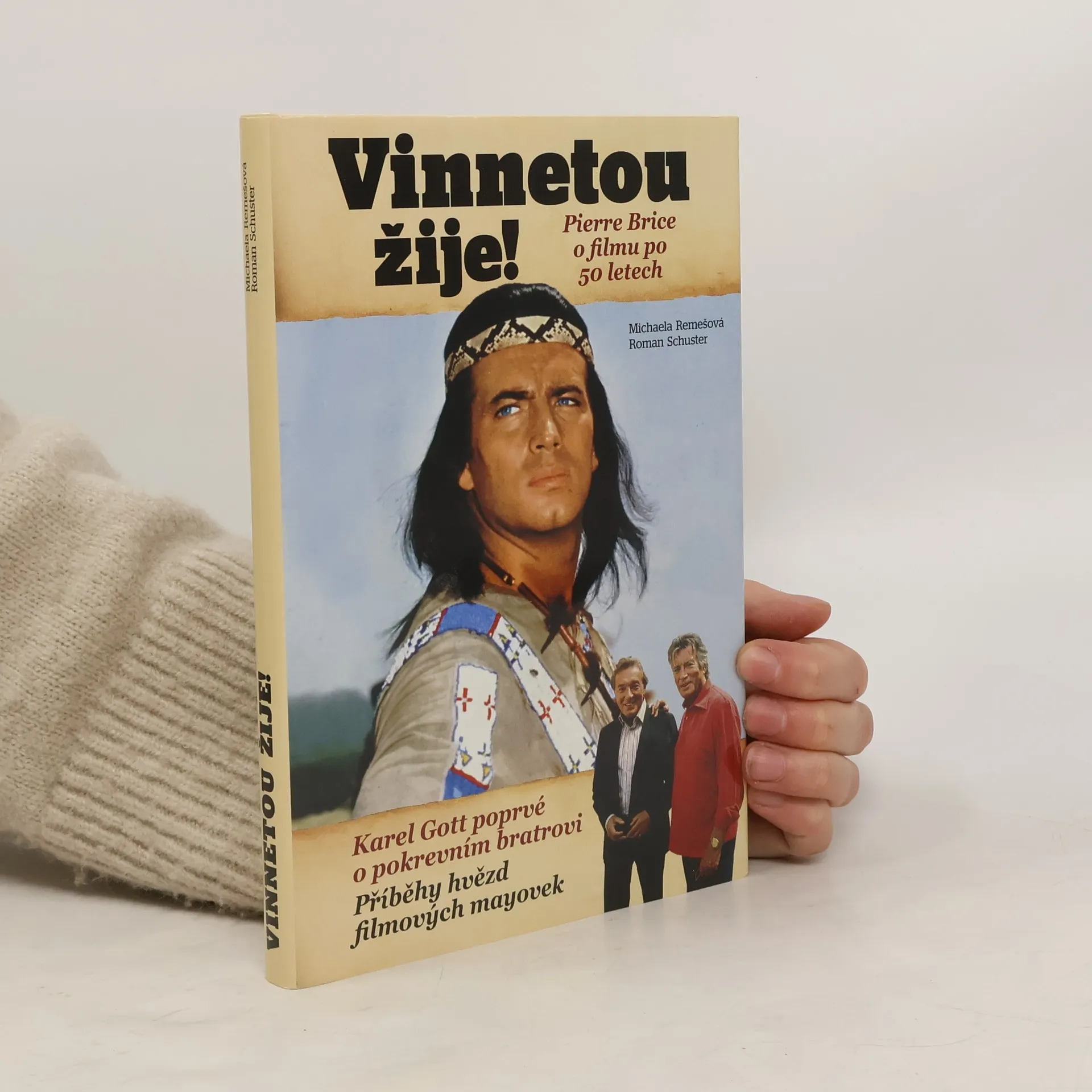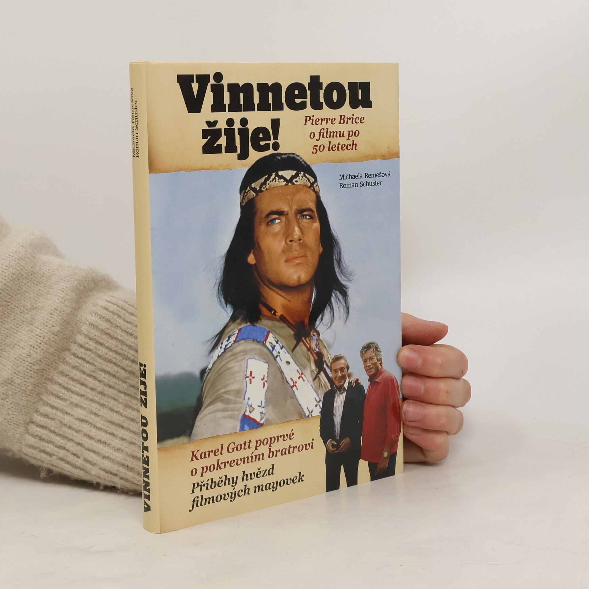 Kniha reportérů deníku Blesk, Michaely Remešové a Romana Schustera, vychází k 50. výročí prvního filmu ze slavné vinnetouovské série. Obsahuje reportáž z oslav v Chorvatsku, včetně rozhovoru s Pierrem Bricem, představitelem Vinnetoua. Dále přináší medailony filmových hrdinů a příběh pokrevního bratrství mezi Pierrem Brice a Karlem Gottem, včetně vzpomínek na jejich společné koncertní turné. Kniha také odhaluje málo známé české souvislosti s postavami mayovek, jako jsou české potomky Karla Maye a tragické osudy režiséra, jehož zavraždila česká manželka. Vinnetou žije jako symbol romantiky, ušlechtilosti, hrdinství a přátelství, a jeho příběh ovlivnil generace lidí po celé Evropě. Karel May vytvořil postavy Vinnetoua a Old Shatterhanda již v 19. století, ale jejich filmové zpracování před 50 lety přineslo fenomén, který dodnes nemá obdoby. Vinnetou a jeho dobrodružství jsou stále populární, a to nejen v českých televizích. Kniha nabízí pohled na osudy těch, kteří oživili hrdiny filmové série, a oslovuje čtenáře napříč generacemi.