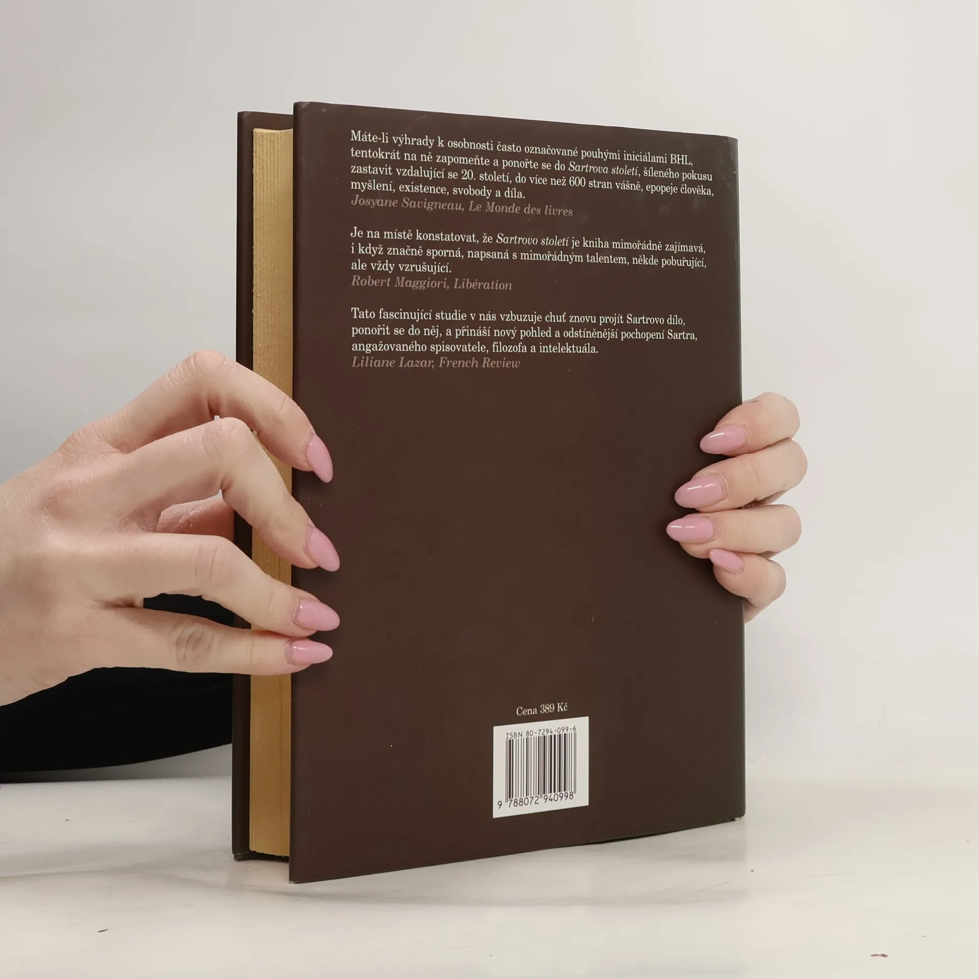 Biografie francouzského spisovatele a filozofa J. P. Sartra. Mezi raným Sartrem, úžasným filozofem Bytí a nicoty, brilantním spisovatelem novely Nevolnost a pozdějším souputníkem nejhorších totalitních systémů existuje totiž svým způsobem rozmlžená hranice. Lévy se pokouší přijít na kloub náhlému zvratu a zodpovědět otázku, proč intelektuál, který zlo do všech důsledků promyslí, mu v rozhodující chvíli podlehne. V Lévyho knize ovšem defiluje vskutku celé intelektuální století. Osobnosti, s nimiž se Sartre musel vyrovnávat, i ti, kteří se museli vyrovnat s ním, Céline, Gide, Flaubert, Heidegger, Husserl, Camus, Malraux, Breton, Deleuze, Foucault a bezpočet dalších. Překvapivý epilog s otevřeným koncem je pak jen jiným vyjádřením dvojznačného vztahu století a jednoho velkého a rozporuplného intelektuála, který v něm zanechal hluboký otisk.