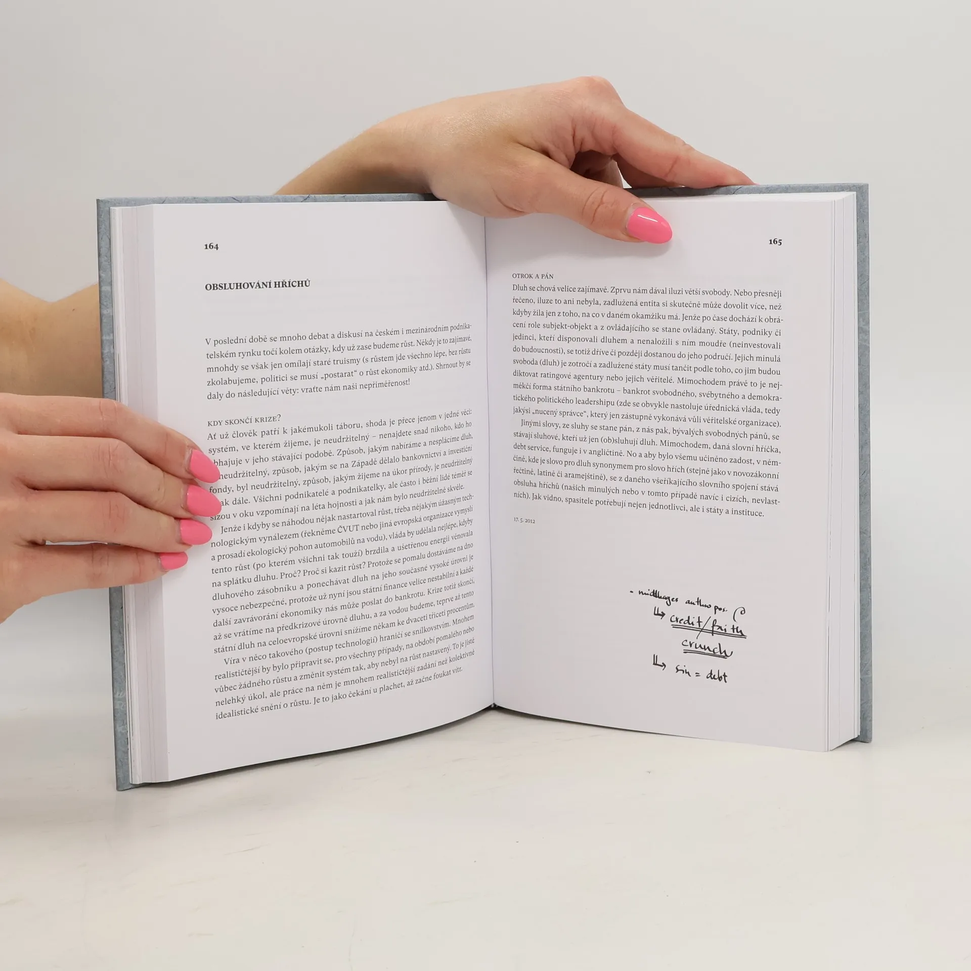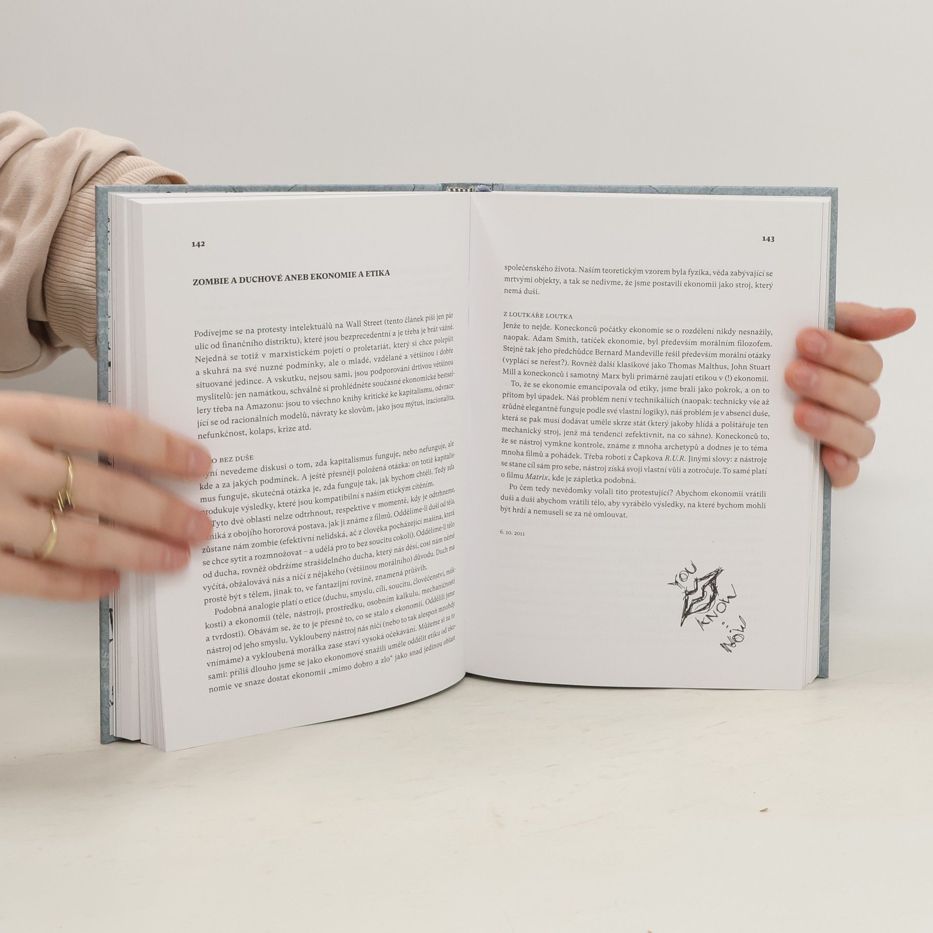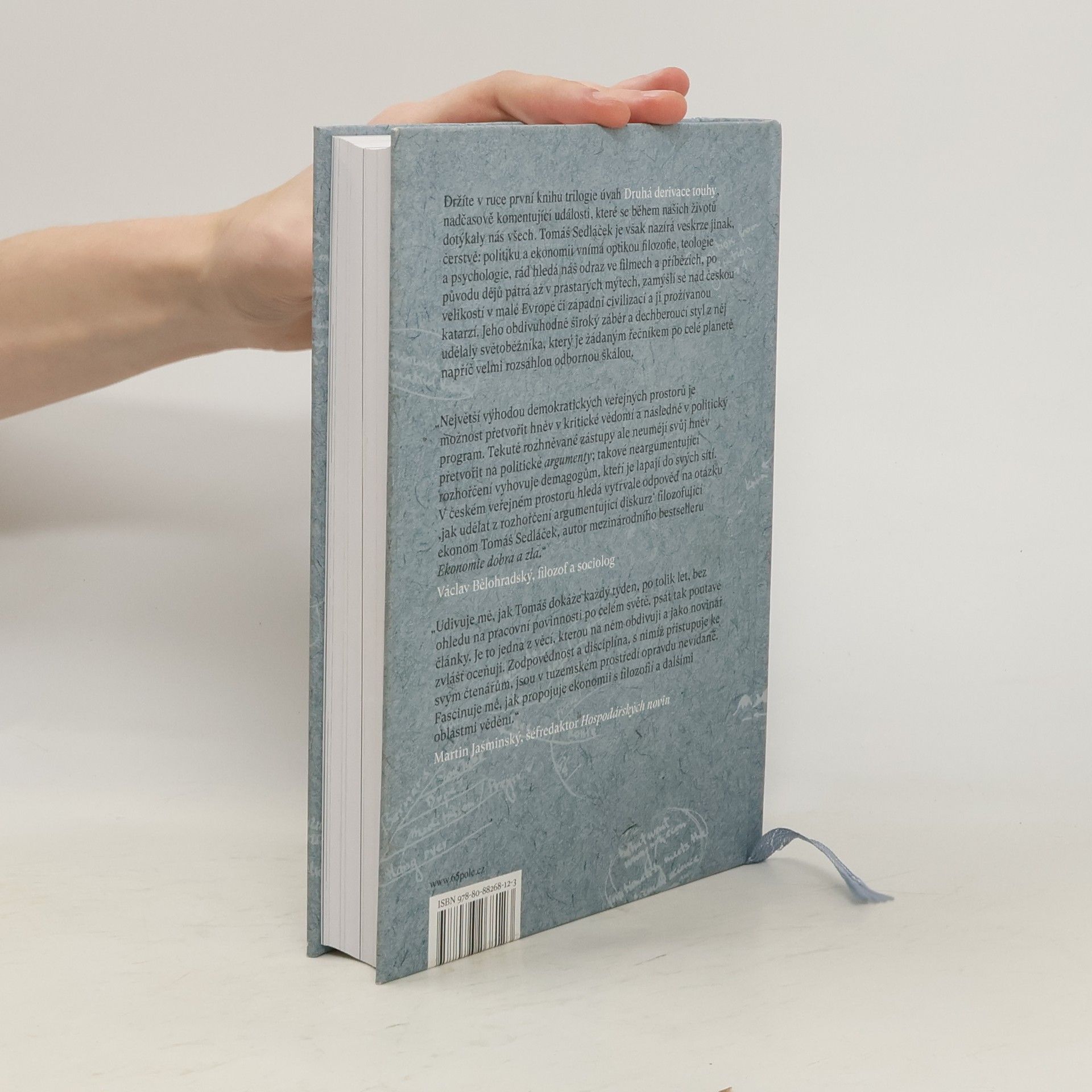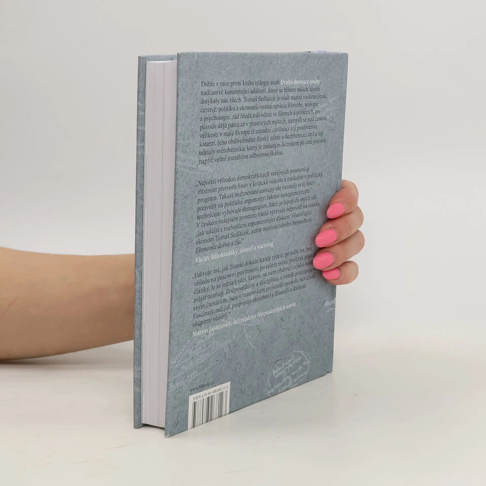 Člověk duše - vnější. Úvahy nad (ne)končícími otázkami. Úvahy ekonoma Tomáše Sedláčka se ohlíží za událostmi nabitým desetiletím. Jedná se o jednu z nejdelších a nejsouvislejších sérií úvah v českém teritoriu, která ukazuje autorovu názorovou integritu a pestrost myšlenek, široký rozhled a sečtělost, hravost a smysl pro humor.
