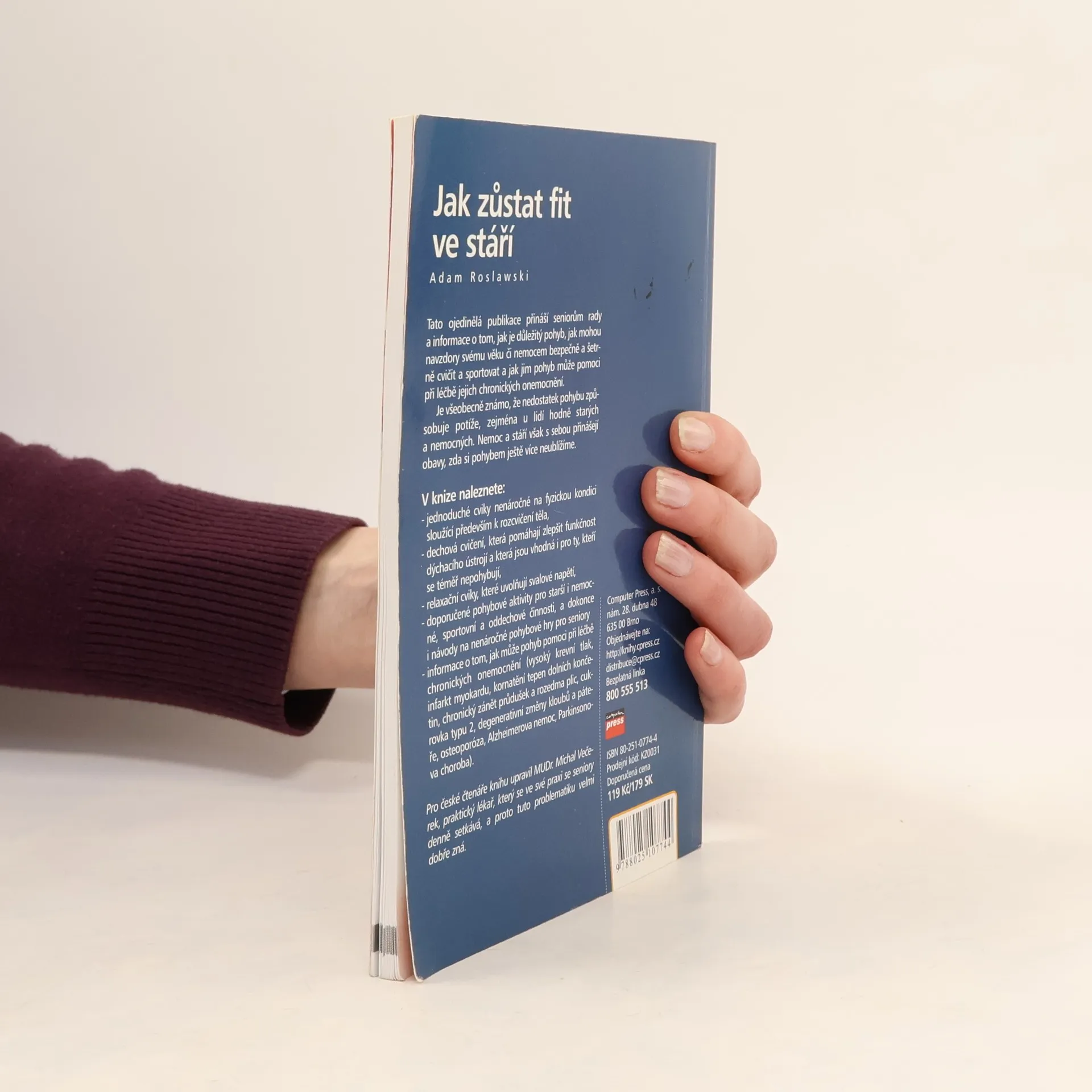 Máte babičku nebo dědečka, kteří mají málo pohybu? Možná se bojí, že jim pohyb ublíží. Jak se správně pohybovat, abychom si nezhoršili dosavadní zdravotní stav? Lékařem napsané sestavy opatrného cvičení pro starší osoby, či nemocné cukrovkou, pacienty s vysokým tlakem, plicními chorobami, po infarktu, s křečovými žilami, s nemocemi pohybového aparátu a dalšími. Starším a nemocným umožní pohyb, který neuškodí.
