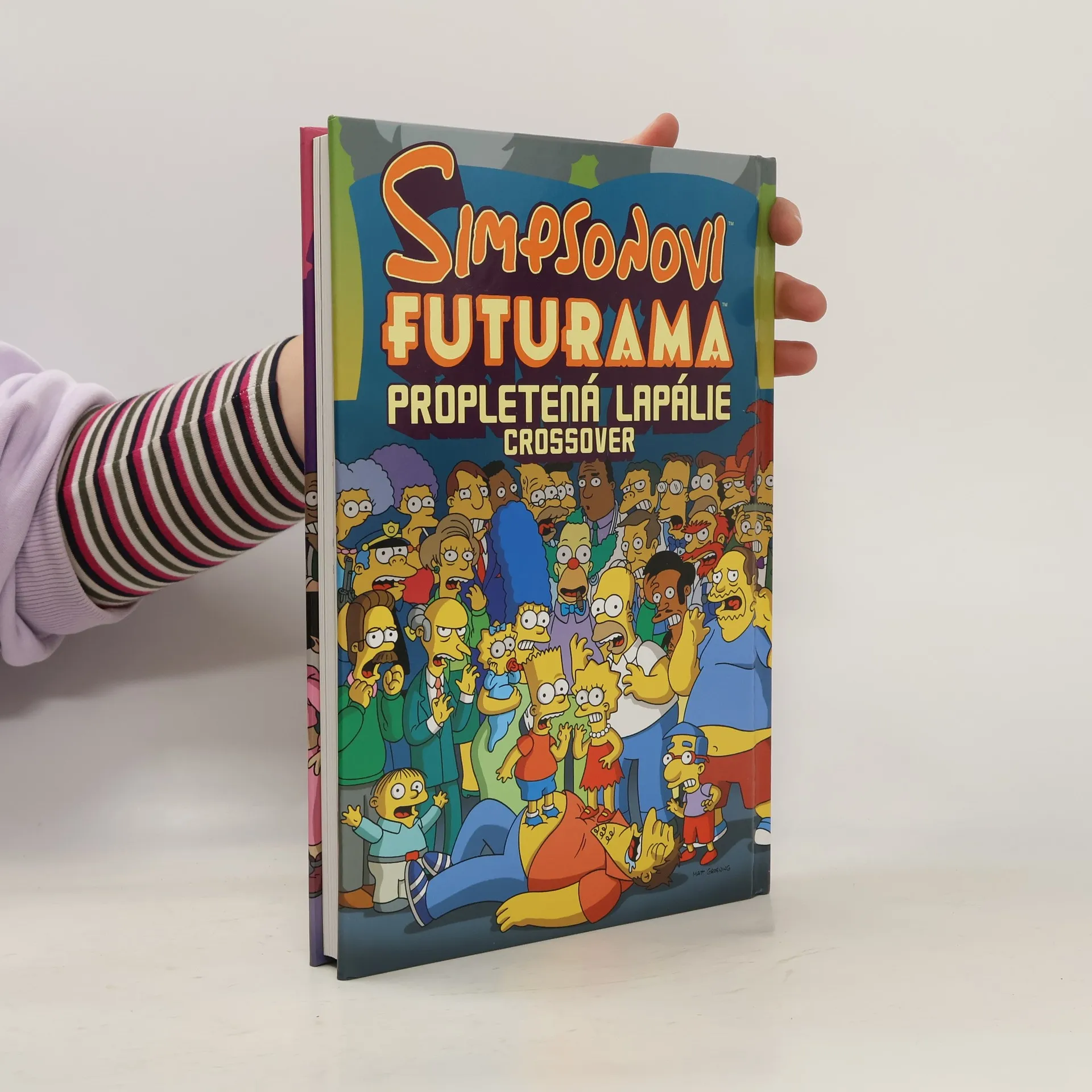 Bender vs. Homer? Tak to je nářez! Co by se stalo, kdyby se posádka Planet Expressu a obyvatelé Nového New Yorku potkali se Simpsonovými a obyvateli Springfieldu… a jak je to vůbec možné? Přicházejí Simpsonovi plní Futuramy! Futurama zaplavená Simpsonovými! Účinkují: zlí mozkové, mimozemšťané s laktózovou intolerancí, obří klubko vlny, létající auta, záměny identity, ovládnutí světa, tkanivo reality roztrhané na kusy, myslící planeta sbírající komiksy, Deweyův desetinný systém, meloun samojed, otrokářství, vesmírní piráti, mocí posedlí upíři, bitvy superhrdinů, nelichotivé spodní prádlo, šílená věda, která se vymkla kontrole a mnohem, mnohem víc! Toto je sága, na kterou jste čekali! Příběh tak velký, tak ambiciózní a tak strhující, že se musí rozložit na 208 stran velkého formátu, kde najdete pohromadě nové příběhy, mezihry, úvodní skicy, grafické návrhy postav a galerii plakátů od předních talentů komiksové grafiky, jako jsou Alex Ross, Sergio Aragonés, Geof Darrow, Kyle Baker, Peter Kuper a Bernie Wrightson a další. Hledáte konvergenci trhání reality, cestování časoprostorem a to vše v intergalaktickém měřítku? Přesně to jsou Simsonovi versus Futurama a jejich Propletená lapálie! Zábava od začátku až do konce!