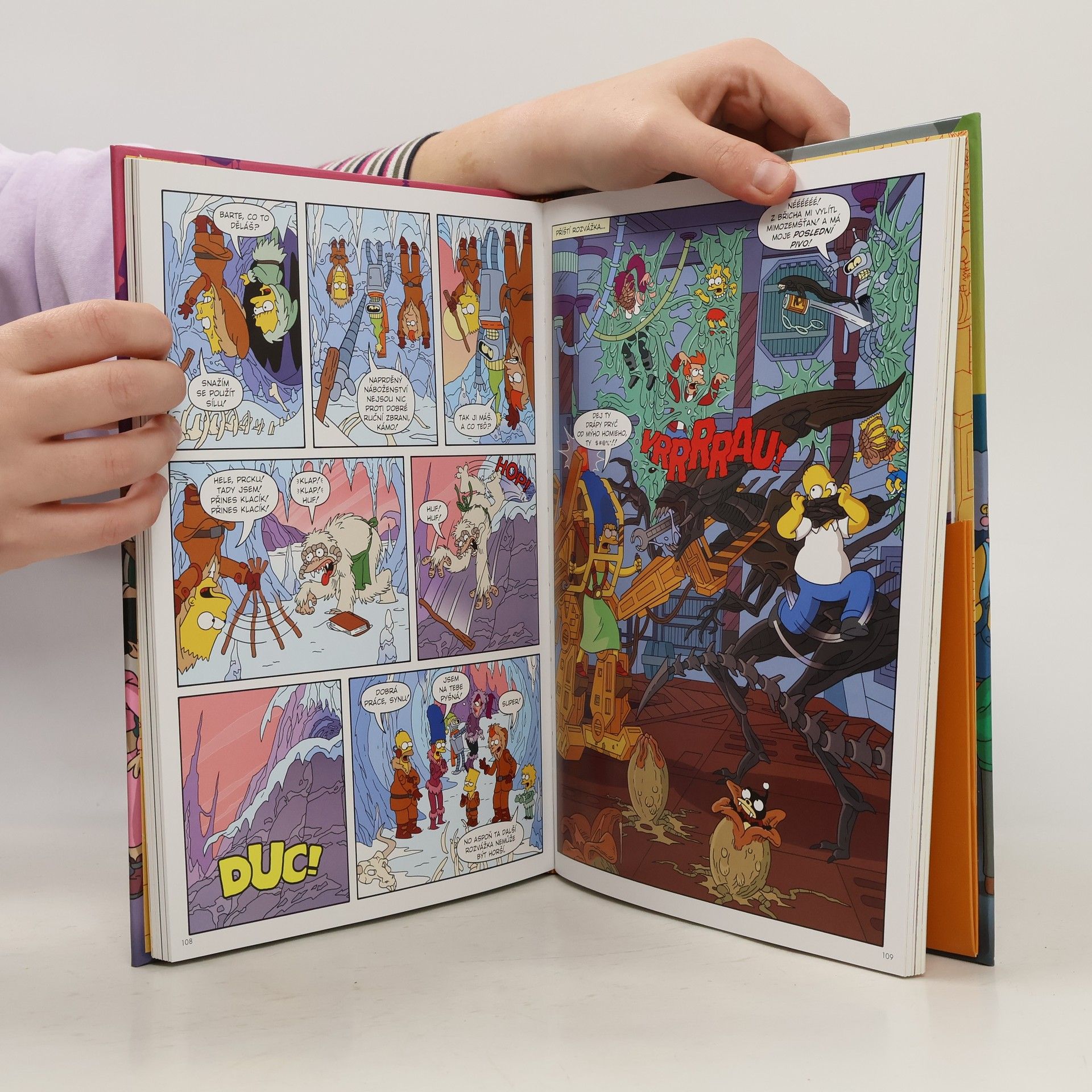 Spojení vesmírů Simpsonových a Futuramy? To je splněný sen! I když to teda není nijak závratně napínavý příběh, jde o příjemné zapracování obou univerz do jednoho celku. Zpracování a výjimečný formát komiksu, doplněný bonusovým materiálem a výtiskem prvního čísla komiksu Simpsonovi, který tu vyšel až za několik let po vydání této knihy, čtenáře rozhodně příjemně potěší. Moc se mi líbí ta kartonová kazeta, do které se samotná kniha schovává a díky které si můžete udělat cover obálky, podle vlastních preferencí.