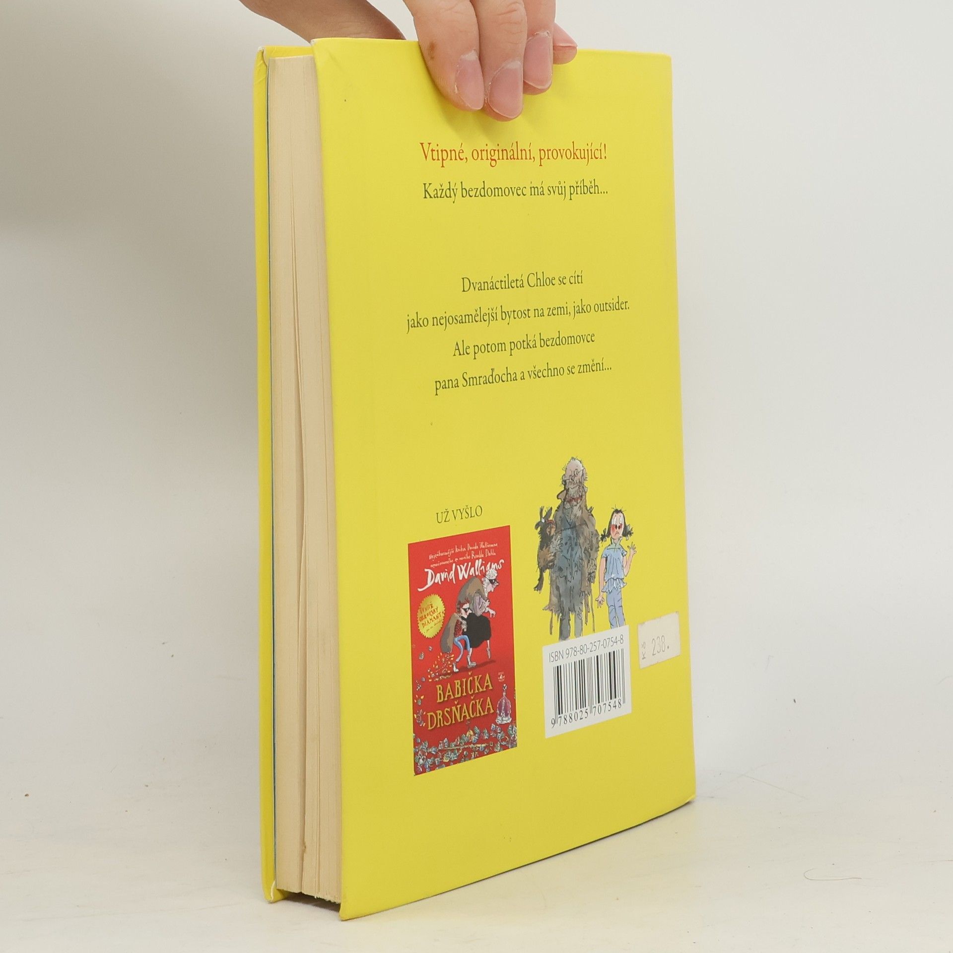 Další humorný příběh pro mladé čtenáře od autora knihy Babička drsňačka. Kouzelně neuctivý a zároveň dojemný příběh vypráví o tajemstvích, přátelství i docela obyčejném životě. Pan Smraďoch patří do kategorie hodně divných románových hrdinů. Žije na lavičce v parku a svému jménu dělá opravdu čest. Je to ten nejsmradlavější smraďoch pod sluncem. Dvanáctileté Chloe to ale rozhodně nebrání v tom, aby se s ním spřátelila. Jasně, páchne, ale na druhou stranu nikdy na ni nikdo nebyl tak milý jako on. A tak se Chloe rozhodne, že milého bezdomovce tajně ubytuje v kůlně na zahradě svých rodičů. Jenže schovejte takového smraďocha! Chloe brzy pozná, že některá tajemství můžou být velmi nebezpečná a od katastrofy je dělí jen malinký krůček.