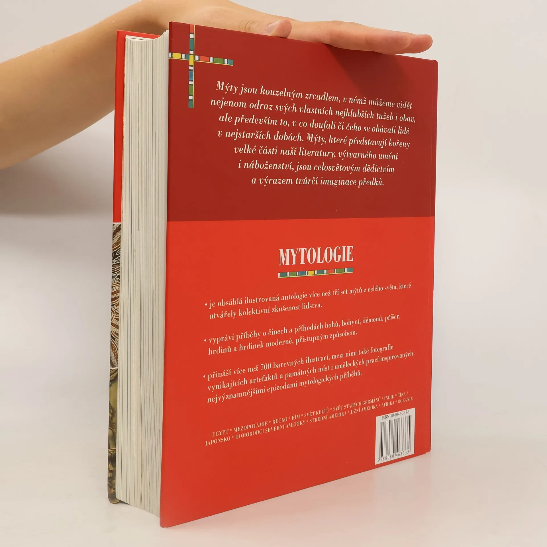 Obsáhlá ilustrovaná antologie více než tří set mýtů z celého světa, které utvářely kolektivní zkušenost lidstva. Vypráví příběhy o činech a příhodách bohů, bohyní, démonů, příšer, hrdinů a hrdinek moderně, přístupným způsobem. Kniha přináší více než 700 barevných ilustrací - mezi nimi také fotografie vynikajících artefaktů a památných míst i uměleckých prací inspirovaných nejvýznamnějšími epizodami mytologických příběhů z celého světa: Egypt - Mezopotámie - Řecko – Řím - Svět Keltů - Svět starých Germánů – Indie – Čína – Japonsko - Domorodci Severní Ameriky – Střední Amerika - Jižní Amerika – Afrika - Oceánie