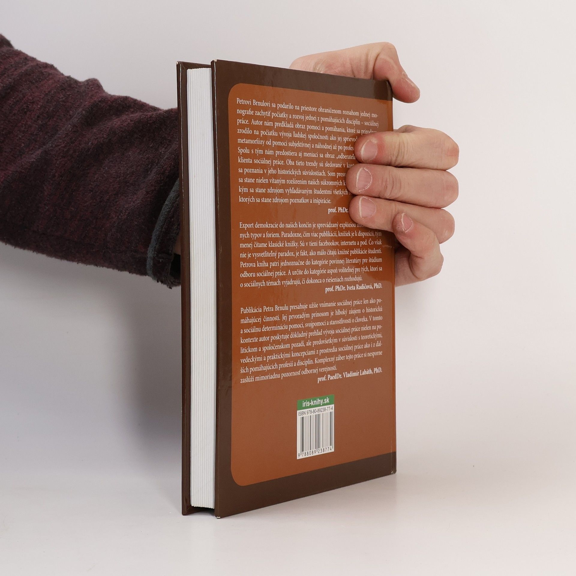 Autorovi sa podarilo na priestore ohraničenom rozsahom jednej monografie zachytiť počiatky a rozvoj jednej z pomáhajúcich disciplín – sociálnej práce. Predkladá nám obraz pomoci a pomáhania, ktoré sa prirodzene zrodilo na počiatku vývoja ľudskej spoločnosti ako jej sprievodný jav a jeho metamorfózy od pomoci subjektívnej a náhodnej až po profesionálnu pomoc. Spolu s tým nám predostiera aj meniaci sa obraz „odberateľa pomoci“, teda klienta sociálnej práce. Oba tieto trendy sú sledované v kontexte meniaceho sa poznania v jeho historických súvislostiach. Som presvedčená, že táto práca sa stane nielen vítaným rozšírením našich súkromných knižníc, ale predovšetkým sa stane zdrojom vyhľadávaným študentmi všetkých stupňov štúdia, pre ktorých sa stane zdrojom poznatkov a inšpirácie.