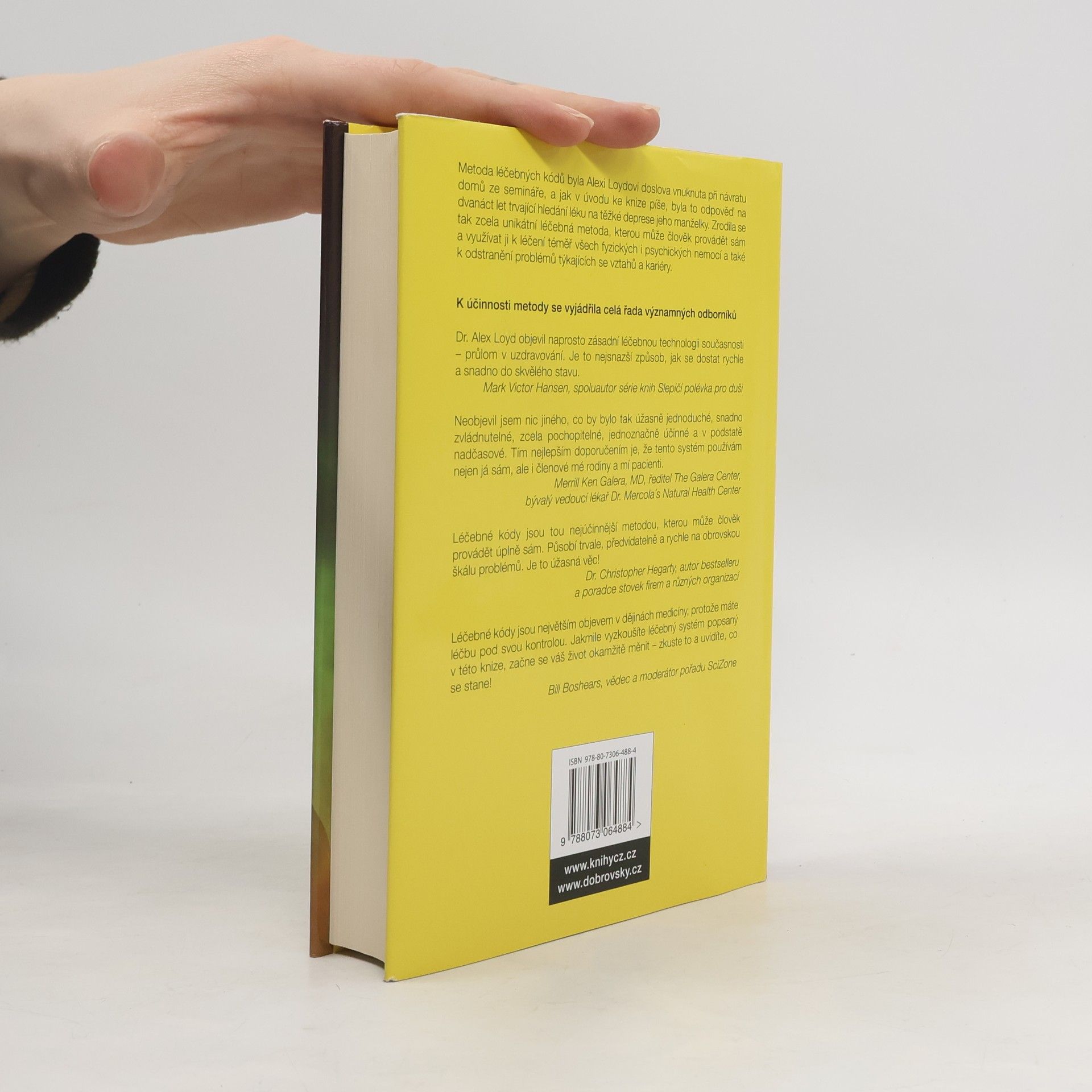 Metoda léčebných kódů byla Alexi Loydovi doslova vnuknuta při návratu domů ze semináře, a jak sám v úvodu knihy píše, byla to odpověď na dvanáct let trvající hledání léku na těžké deprese jeho manželky. Zrodila se tak zcela unikátní léčebná metoda, kterou může člověk provádět sám a využívat ji k léčení téměř všech fyzických i psychických nemocí a také k odstranění problémů týkající se vztahů a kariéry. Alex Loyd popisuje tuto metodu velmi svěžím a snadno pochopitelným způsobem a její účinnost dokládá výpověďmi lidí, jimž zcela zásadně změnila život. Systém léčebných kódů vychází z kvantové fyziky a jeho základem je odstranění problému přímo v jeho zdroji, nikoli pouhých symptomů. Je to metoda snadná a její základní cvičení trvá pouhých šest minut, ale svědectví mnoha klientů Dr. Loyda jasně dokazují, že i za tak krátkou chvíli se člověk může zbavit stresu vyvolaného destruktivními buněčnými vzpomínkami, jež způsobují vznik různých nemocí a dalších problémů. Stačí otevřít knihu a pustit se do toho!