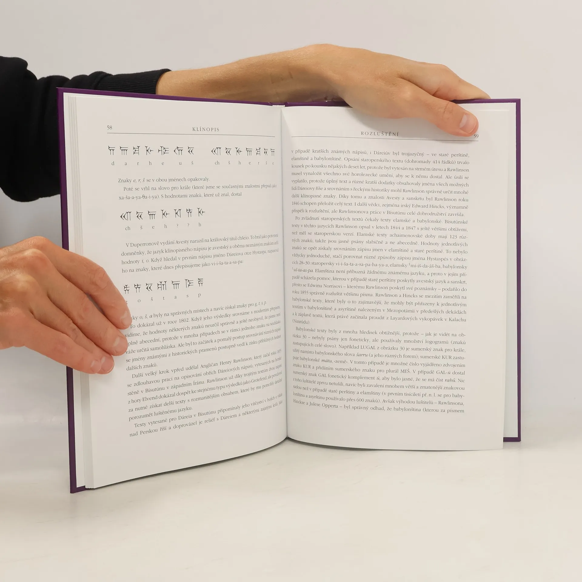 Klínopisný písemný systém vzkvétal na Blízkém východě od konce 4. tisíciletí př. n. l. do roku 75 n. l. Tato kniha sleduje vývoj písma od raných obrázkových znaků až po poslední astronomické tabulky a důvody, proč se používalo pro zápis mnoha různých jazyků Blízkého východu. Textové pasáže ukazují, jak se písmo rozkládá do slov a slabik a jak přečíst jména nejznámějších králů na příslušných památkách. Výňatky ze soudobé sumerské literatury a školních textů svědčí o výuce písařů; připojeny jsou různé typy nápisů, které vytvořili. Kniha vypráví také příběh rozluštění klínopisu a pro sběratele je připojen návod, jak rozeznat padělané nápisy. – Christopher Walker je bývalým vedoucím sbírek Oddělení starověkého Blízkého východu Britského muzea. Napsal několik děl o babylonském klínopise a mezopotamské historii.