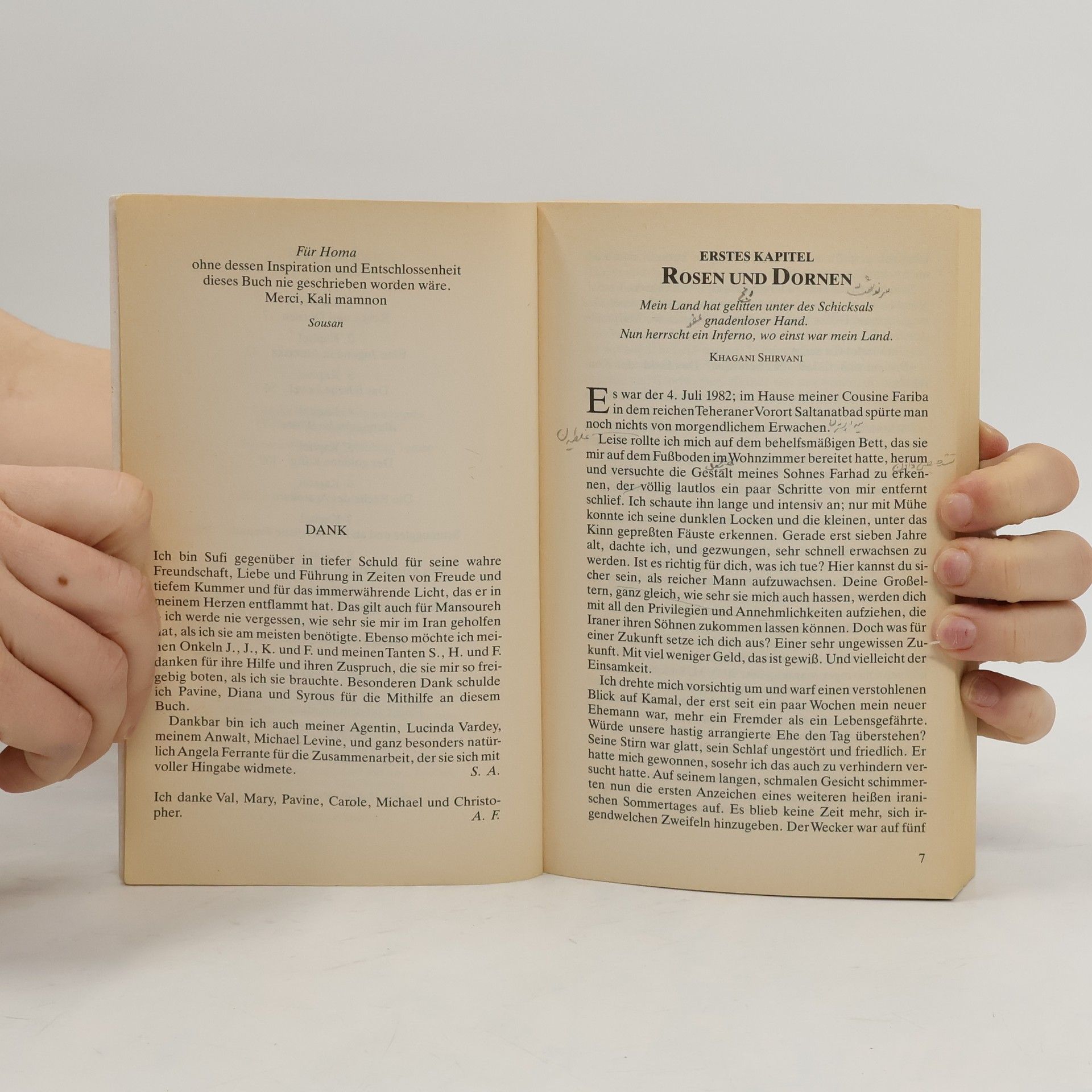 Was wirklich mit den Menschen im Iran geschieht, die nicht ins Schema der gläubigen Muslime passen, welchen Gefährdungen und welchen Folterungen sie ausgesetzt sind, das erzählt die dramatische Lebensgeschichte der Exiliranerin Sousan Azadi. Mit 18 Jahren wurde sie an einen um 20 Jahre älteren Mann verheiratet und genoss ein Leben in Luxus, wie es nicht einmal die Regenbogenpresse zu schildern imstande wäre. Doch der frühe Tod ihres Mannes setzt Sousan Azadi im mittlerweile von den Mullahs regierten Land der unausweichlichen Katastrophe aus: Als Fremde im eigenen Land mit westlichen Verhaltensregeln weiß sie nicht, wie sich eine islamische Frau zu benehmen hat. Rasch wird sie zur Zielscheibe der Revolutionswächter, die sie nach einer Hausdurchsuchung für eine Zeitlang ins Gefängnis werfen, das sich als wahre Hölle entpuppt. Eine Rettung sieht sie nur in einer Flucht ins Ausland, die ihr schließlich auch gelingt.
