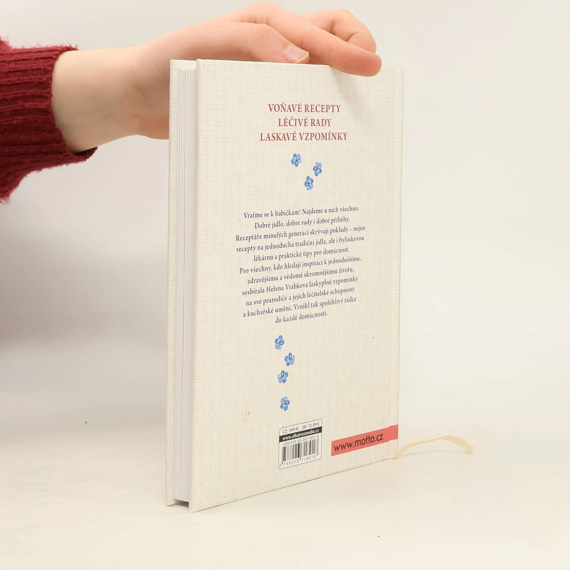 Voňavé recepty, léčivé rady a laskavé vzpomínky. Svět klidu, pohody, lásky, kde se dobře vaří, nic nebolí a nikdo nespěchá. Kde ho najít? U babiček… Pro všechny, kdo hledají inspiraci pro jednodušší, zdravější a vědomě skromnější život, je tu atraktivní knížka jednoduchých receptů tradiční české kuchyně, nesmrtelných rad do domácnosti a bylinkářských tipů. Když moderní doba vykolejí, je ten pravý čas sáhnout do babiččina receptáře.