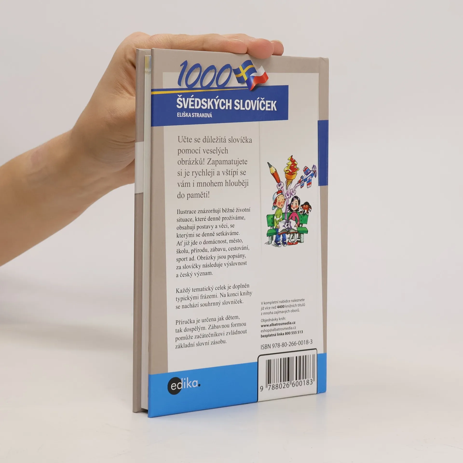 Praktická knížka se stane dobrým pomocníkem při učení a procvičování švédských slovíček. Na veselých obrázcích, jež znázorňují běžné životní situace, najdete názvy věcí, se kterými se denně setkáváte. Každý tematický celek je pak doplněn jednoduchými frázemi ze života, které můžete potřebovat. V závěru se nachází souhrnný česko-švédský slovník se všemi slovy z knížky a poznámky k výslovnosti.