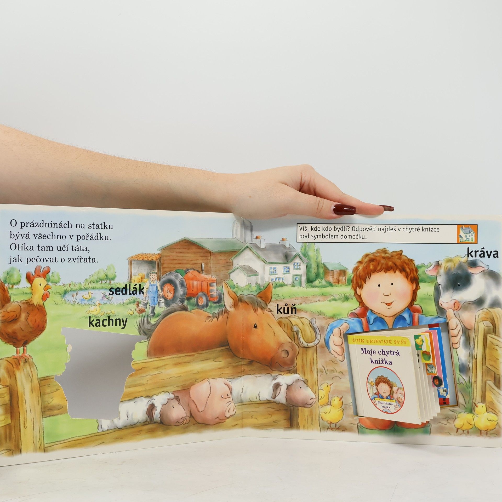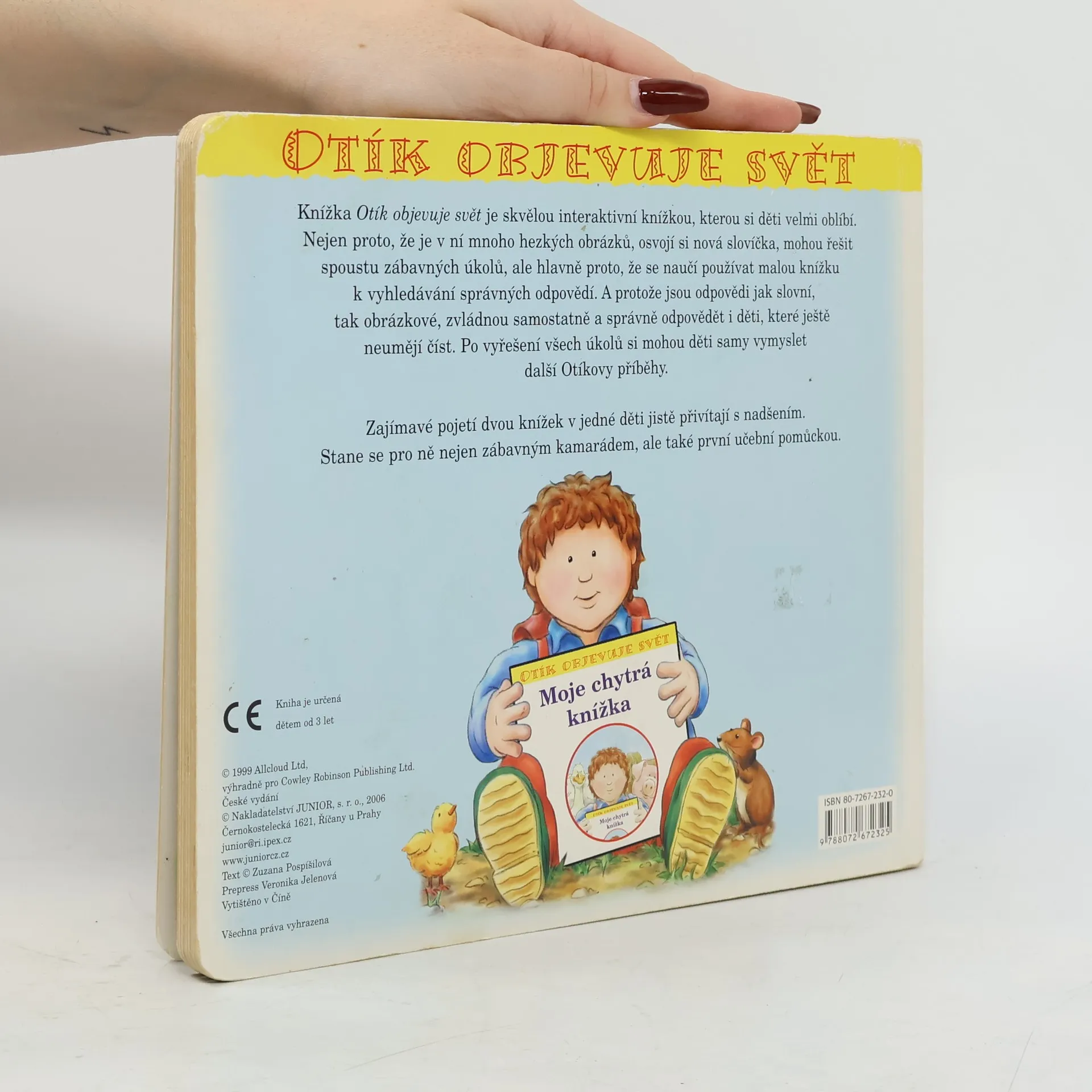 Knížka Otík objevuje svět je skvělou interaktivní knížkou, kterou si děti velmi oblíbí. Nejen proto, že je v ní mnoho hezkých obrázků, ,osvojí si nová slovíčka, mohou řešit spoustu zábavných úkolů, ale hlavně proto, že se naučí používat malou knížku k vyhledávání správných odpovědí. A protože jsou odpovědi jak slovní, tak obrázkové, zvládnou samostatně a správně odpovědět i děti, které ještě neumějí číst. Po vyřešení všech úkolů si mohou děti samy vymyslet další Otíkovy příběhy. Zajímavé pojetí dvou knížek v jedné děti jistě přivítají s nadšením. Stane se pro ně nejen zábavným kamarádem, ale také první učební pomůckou.