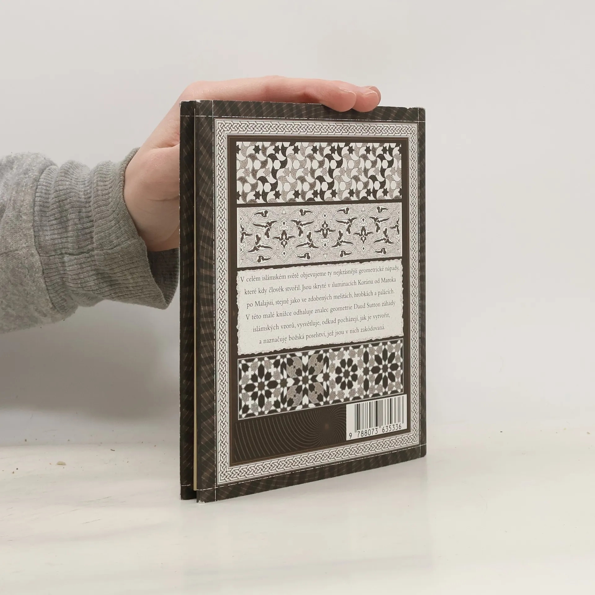 Islámský design zdobí korán, mešity, mauzolea i paláce a jsou v něm skryté ty nejnádhernější geometrické vzory, které kdy člověk vytvořil. Během dlouhé umělecké tradice islámského světa se uplatňoval v nejrůznějších prostředích, ale s jednotícími harmonickými faktory, díky kterým je okamžitě rozeznatelný. Ve struktuře islámského designu jsou dva klíčové aspekty: kaligrafie využívající arabské písmo a abstraktní zdobení. Odborník v oboru geometrie Daud Sutton nabízí ve své knize výjimečný vhled do islámské kultury, odhaluje tajemství islámských geometrických vzorů, vysvětluje, odkud pocházejí, jak vznikají, a přibližuje duchovní vzkazy, jež jsou v nich zakódované.