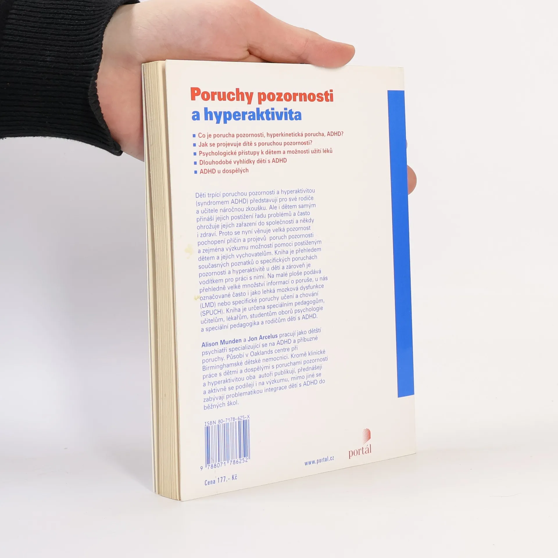 Děti trpící poruchou pozornosti s hyperaktivitou (syndromem ADHD) představují pro své rodiče a učitele náročnou zkoušku. Ale i dětem samým přináší jejich postižení řadu problémů a často ohrožuje jejich zařazení do společnosti a někdy i zdraví. Kniha je přehledem současných poznatků o specifických poruchách pozornosti a hyperaktivitě u dětí a zároveň je vodítkem pro práci s nimi.