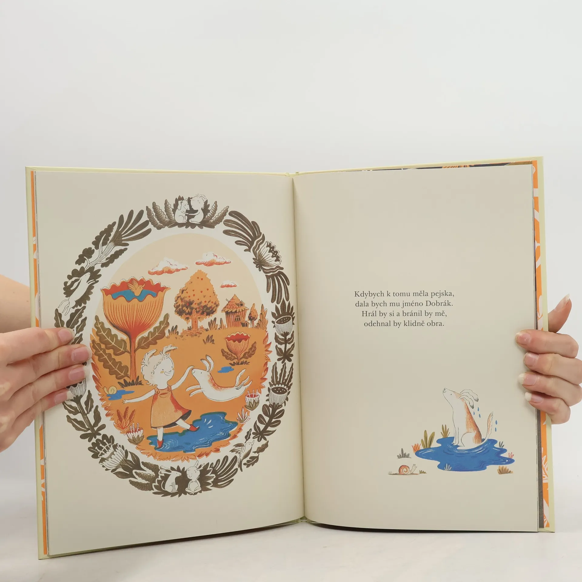 Krátké lyrické veršíky vytváří harmonii s přívětivými, snovými ilustracemi. Pásmo veršů a obrázků ze světa dětské fantazie, kde je všechno blízké a osobní. Ať už je to pejsek, křeslo nebo jezírko.