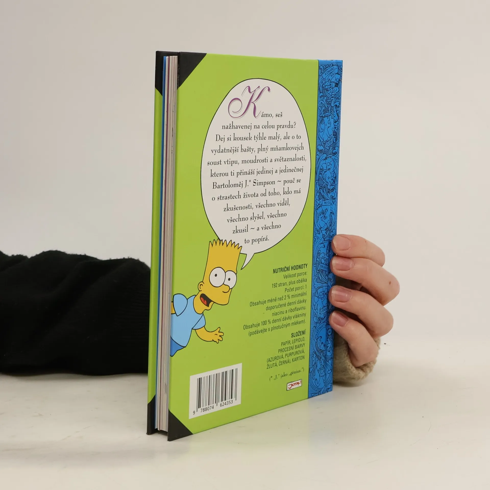 Knížka plná vypečených rad Barta Simpsona pobaví všechny ve věkové kategorii od 10 do 100 let. Nabízí rady a poučení pro všechny situace — potřebujete pro sebe urvat co největší kus večeře? Potřebujete si zpestřit nudné každodenní koupání? Nemáte tušení, jakou hodnotu má ve škole váš oběd? Nevíte, jak sbalit holku? Jak přelstít rodiče, abyste nemuseli v osm do postele? Jak z nich vytáhnout co nejvíc peněz? Jak se stát transkontinentálním výtržníkem? Jaký je opravdový smysl života? Bart Simpson si ví rady v každé situaci a rád se se čtenáři o své zkušenosti podělí.