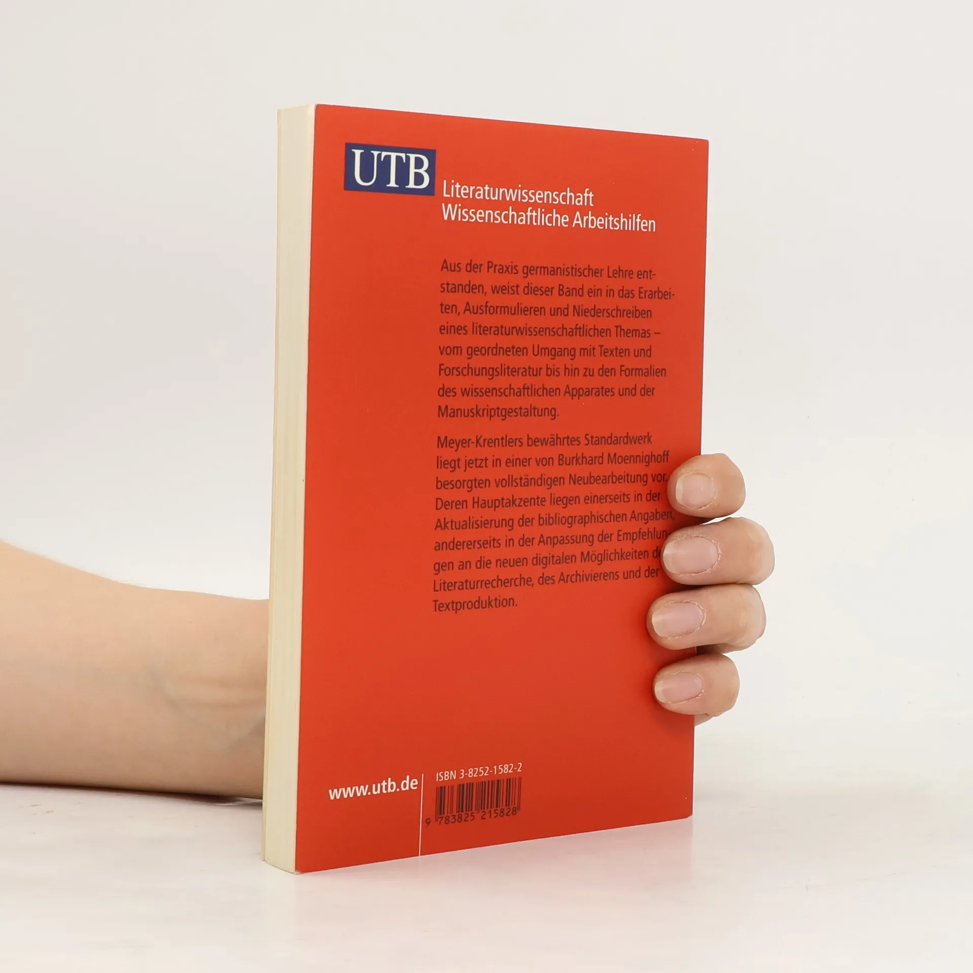 Aus der Praxis germanistischer Lehre entstanden, weist dieser Band ein in das Erarbeiten, Ausformulieren und Niederschreiben eines literaturwissenschaftliches Themas - vom geordneten Umgang mit Texten und Forschungsliteratur bis hin zu den Formalien des wissenschaftlichen Apparates und Manuskriptgestaltung. Meyer-Krentlers bewährtes Standardwerk liegt in jetzt in einer von Burkhard Moennighoff besorgten vollständigen Neubearbeitung vor. Deren Hauptakzente liegen einerseits in der Aktualisierung der bibliographischen Angabe, andererseits in der Anpassung der Empfelungen an neuen digitalen Möglichkeiten der Literaturrecherche des Archivierens und der textproduktion.